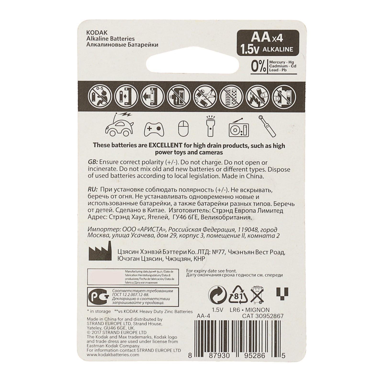 Батарейка алкалиновая Kodak Max, Aa, Lr6-4bl, 1.5в, блистер, 4 шт.
