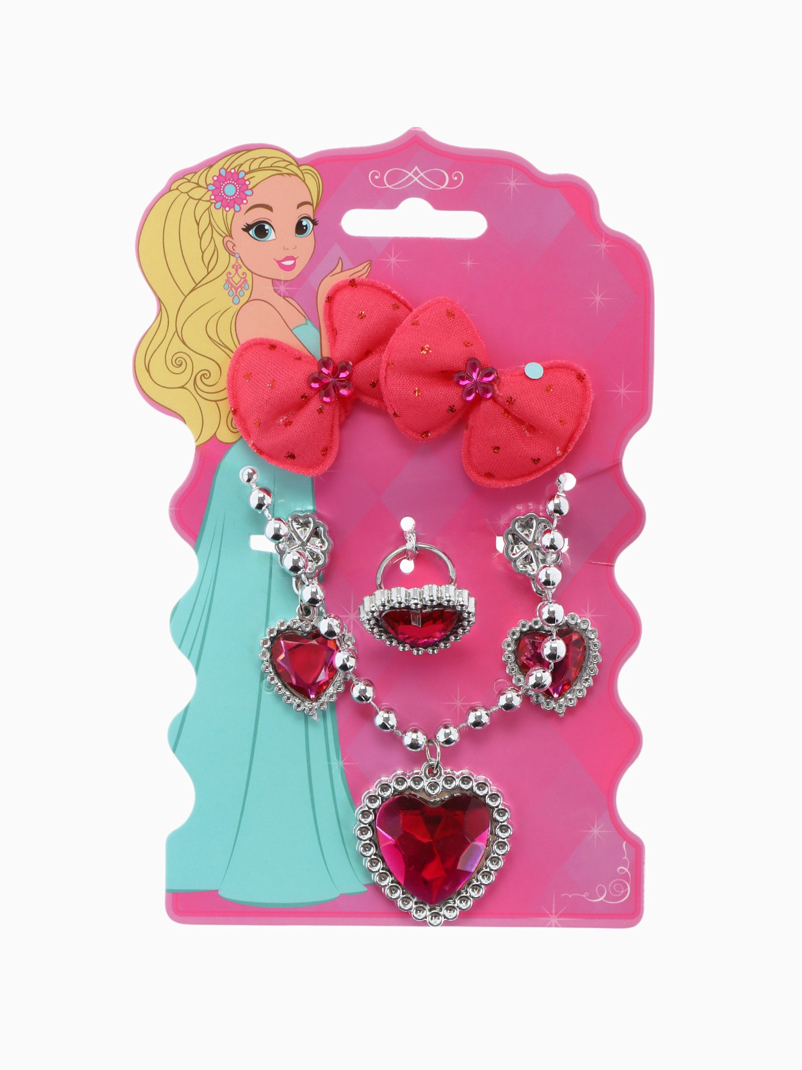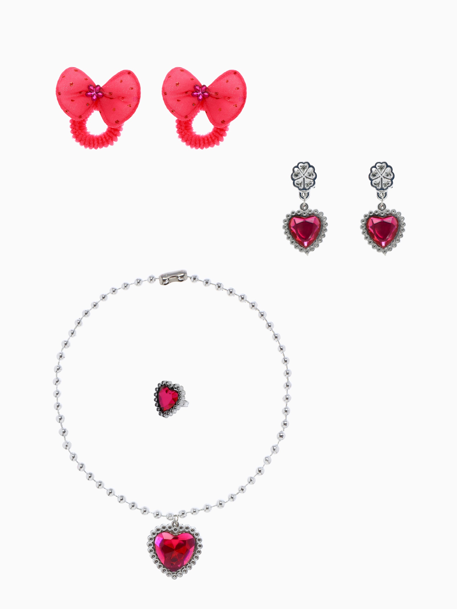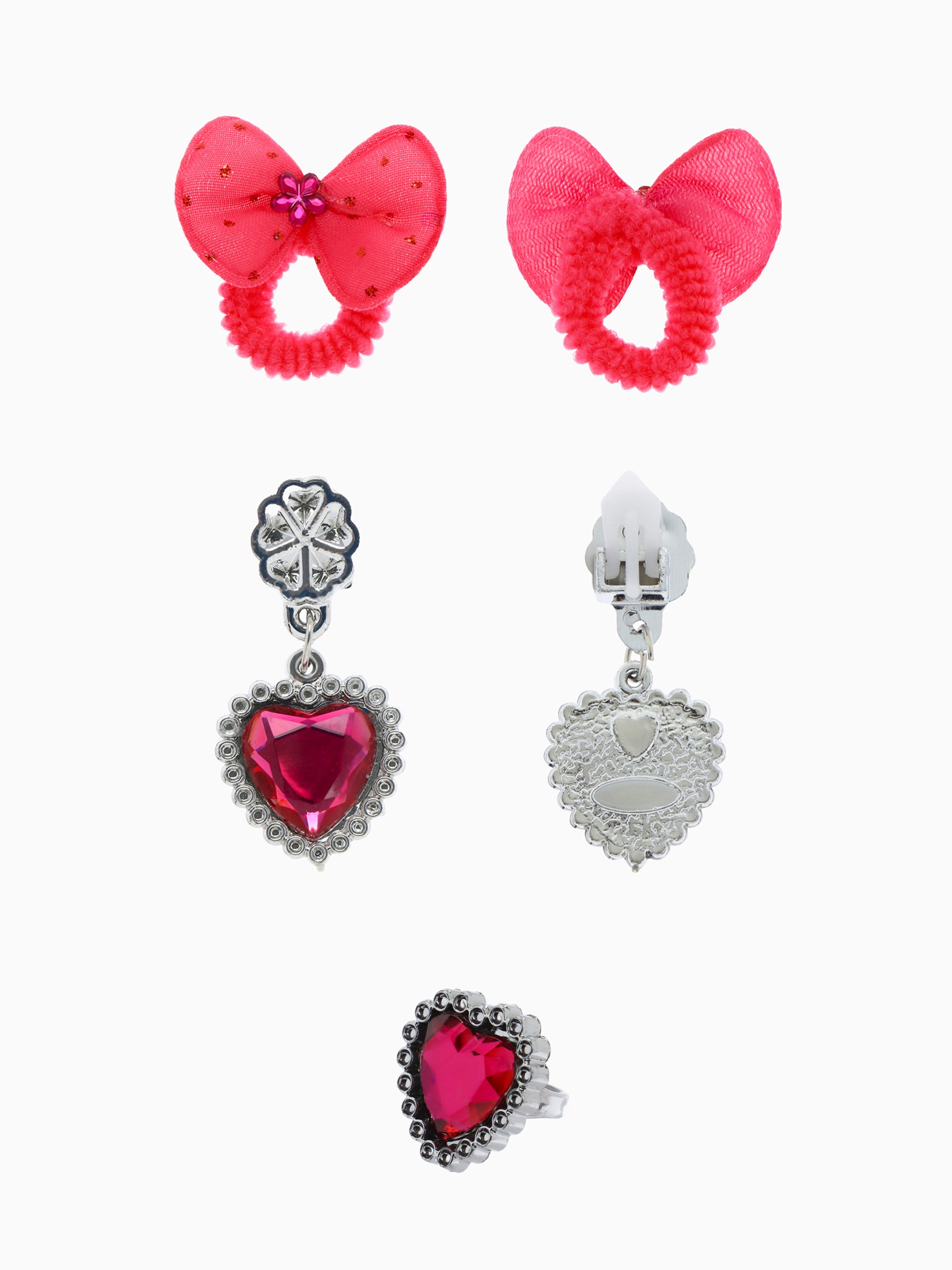 Набор детских украшений выбражулька «сердце», 5 предметов: 2 резинки, клипсы, кулон, кольцо, малиновый