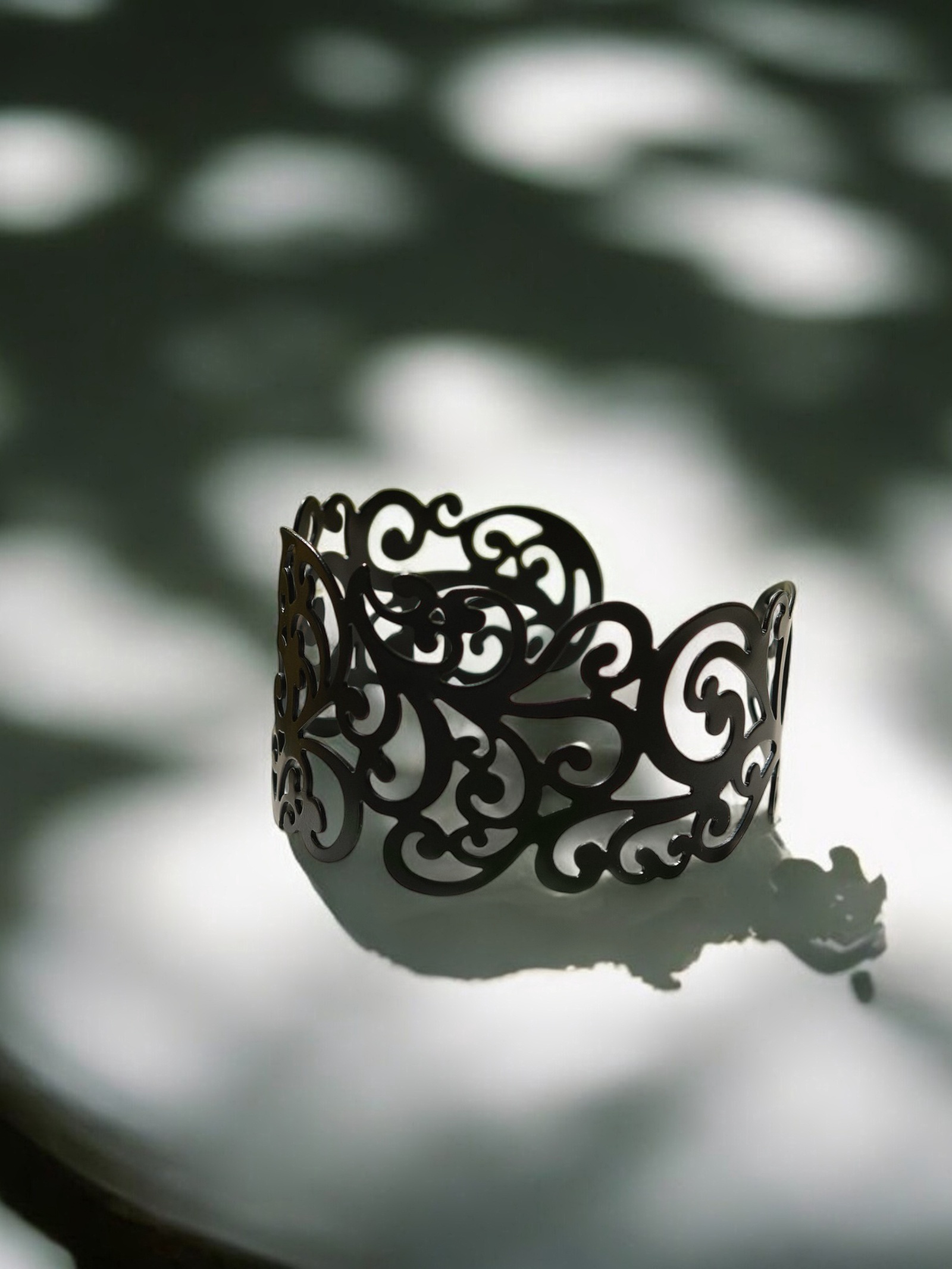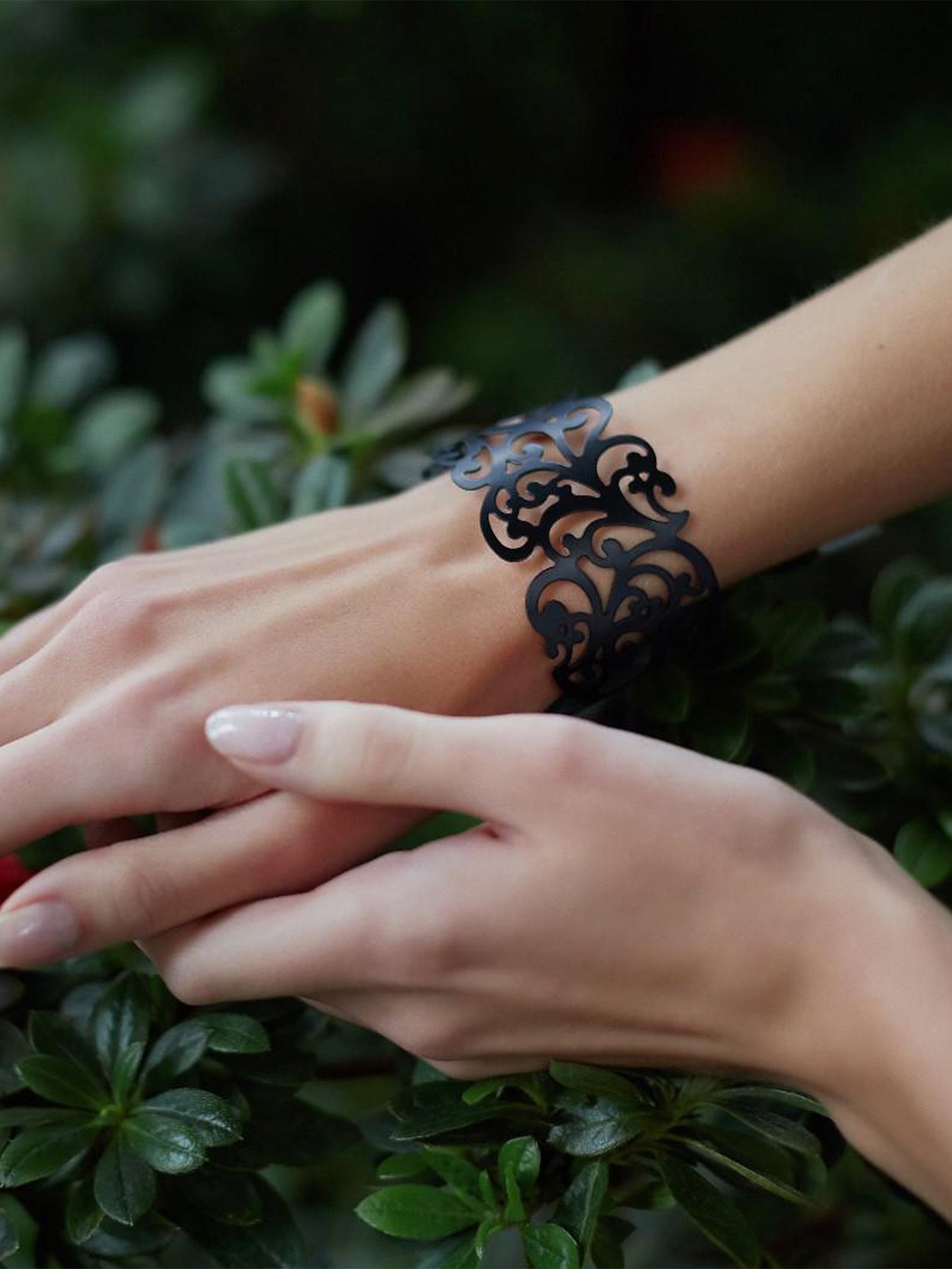 Браслет металл «каркас» фэшн леди, узор, цвет чёрный, 6 см