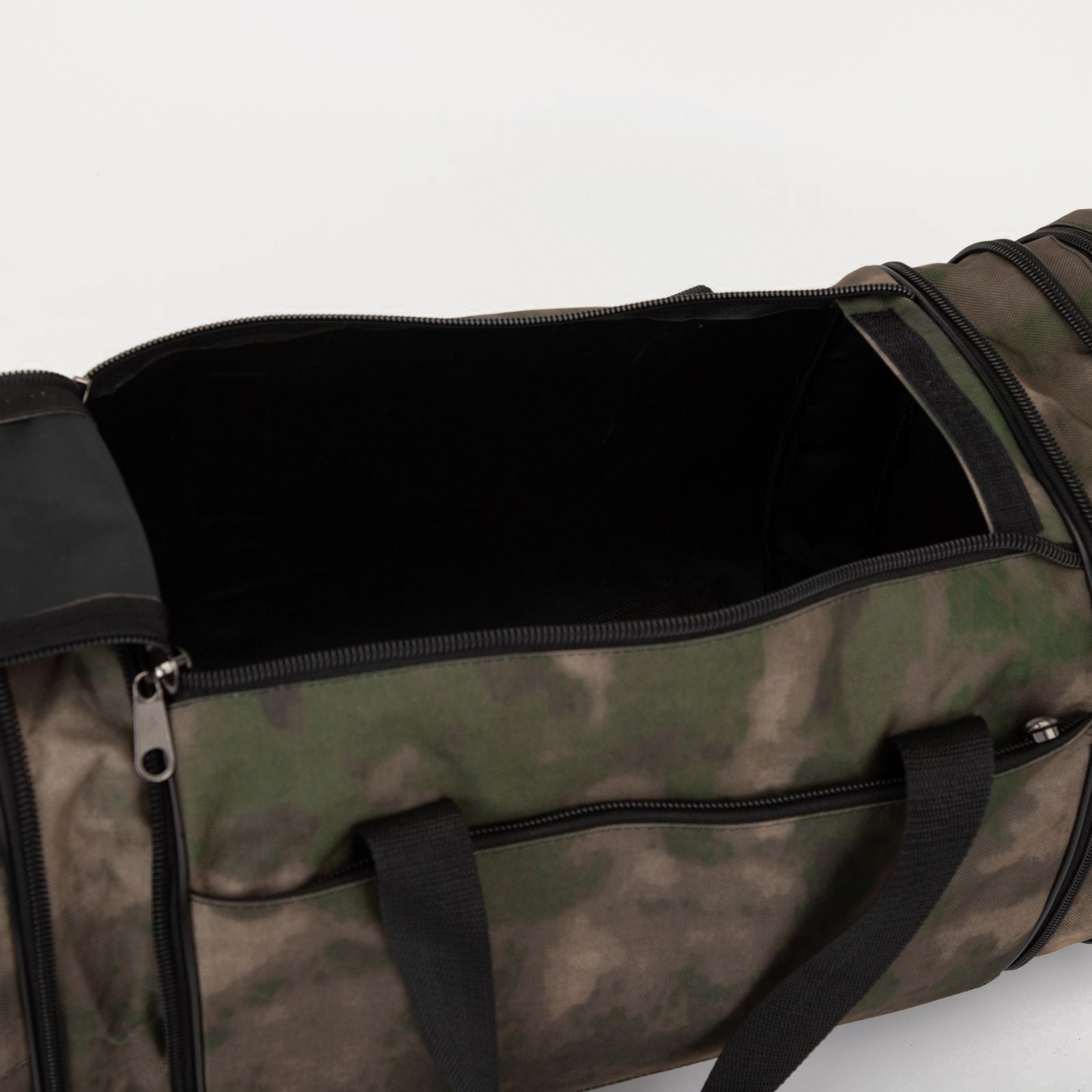 Сумка дорожная на молнии, с увеличением, 3 наружных кармана, длинный ремень, цвет хаки/камуфляж. Ищете надежного спутника для путешествий и командировок? Эта дорожная сумка с камуфляжным узором станет вашим идеальным выбором. Она не только привлекает внимание своим стильным дизайном в цвете хаки/камуфляж, но и продумана до мелочей для вашего комфорта. Сумка изготовлена из прочного текстиля, что гарантирует её долговечность и устойчивость к износу. Её уникальная особенность — возможность увеличения объема, что делает её отличным выбором как для коротких поездок, так и для длительных путешествий. Три наружных кармана позволяют удобно разместить все мелочи под рукой, а длинный регулируемый ремень обеспечивает комфорт при переноске. Прочность и надежность: качественный текстиль выдерживает любые дорожные испытания. Практичность: возможность увеличения объема даёт дополнительное пространство для ваших вещей. Удобство: три наружных кармана для быстрого доступа к важным мелочам. Комфорт: регулируемый ремень позволяет удобно носить сумку на плече. Стильный дизайн: камуфляжный принт подходит для активного отдыха и городских прогулок. Эта дорожная сумка объединяет в себе стиль, функциональность и высокое качество, делая её незаменимой в любой поездке. Будь то командировка или отпуск, она всегда будет готова к новым приключениям. Цвет: Камуфляж Длина, см: 55 parts count: 0 На колёсиках: Нет Материал: Текстиль Наличие символики РФ: Нет Модель сумки: Баул Дополнительный объём: С увеличением Увеличение, см: 10 - 12  развернуть описание ▼