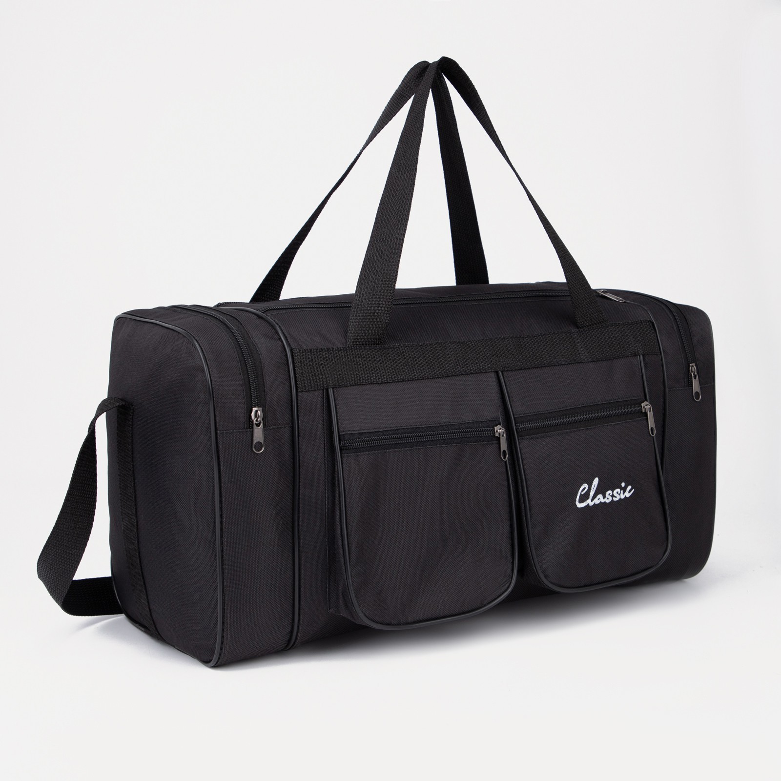 Сумка спортивная на молнии, 4 наружных кармана, длинный ремень, средний размер, цвет чёрный. Познакомьтесь с идеальным аксессуаром для активного образа жизни — спортивной сумкой от AMeN. Эта модель сочетает стильный дизайн и практичность, чтобы сопровождать вас в любых приключениях и тренировках. Изготовленная из прочного текстиля, сумка обладает средней вместимостью и продуманным конструктивом. Чёрный цвет делает её универсальным выбором, подходящим под любой наряд, а надёжная молния обеспечивает безопасность ваших вещей. Четыре наружных кармана помогают организовать пространство и быстро найти нужные мелочи, а длинный ремень позволяет удобно носить сумку через плечо или на груди. Практичность и удобство: 4 внешних кармана для быстрого доступа к необходимым предметам и удобный длинный ремень для комфортной переноски. Прочный материал: текстильная основа гарантирует долговечность и надёжность в любых условиях. Стильный внешний вид: чёрный цвет и современный дизайн делают сумку идеальным выбором как для спортзала, так и для повседневных дел. Оптимальный размер: средняя вместимость подходит для хранения всего необходимого без излишнего объёма. Спортивная сумка от AMeN — это не просто аксессуар, а ваш надёжный спутник, который поможет организовать и упростить ваш активный образ жизни. Придя в магазин, вы получите не только удобство, но и стиль, который будет радовать вас каждый день. Цвет: Чёрный Длина, см: 46 На колёсиках: Нет Материал: Текстиль Наличие символики РФ: Нет Модель сумки: Баул Дополнительный объём: Без увеличения  развернуть описание ▼
