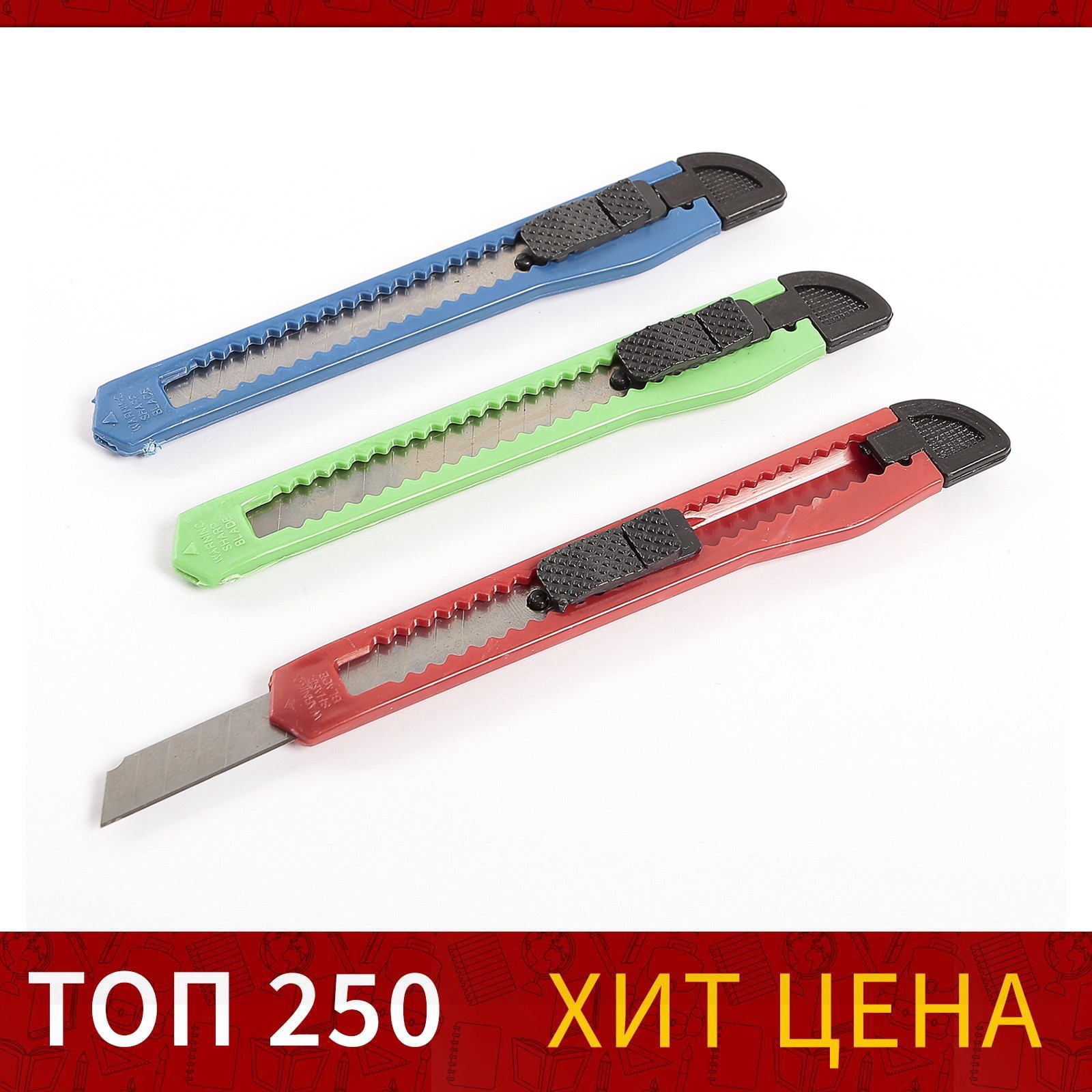 Нож канцелярский, лезвие 9 мм, корпус пластик, фиксатор, блистер, корпус микс
