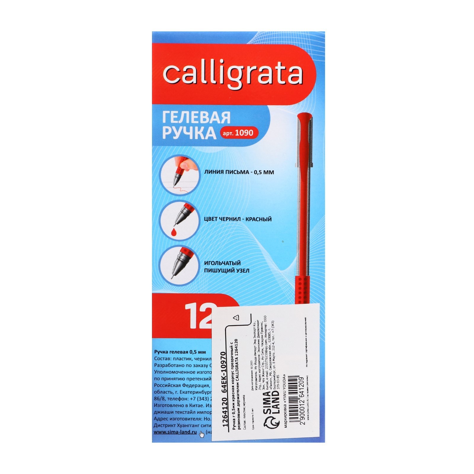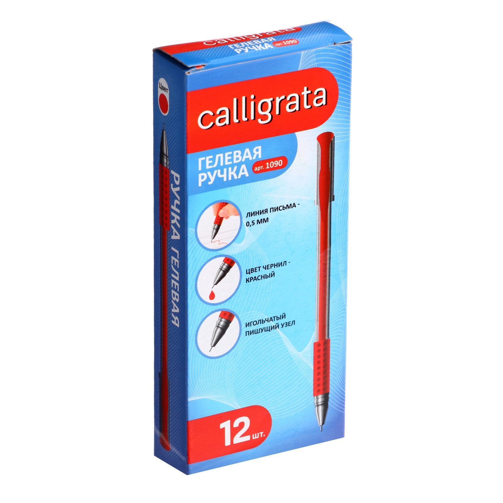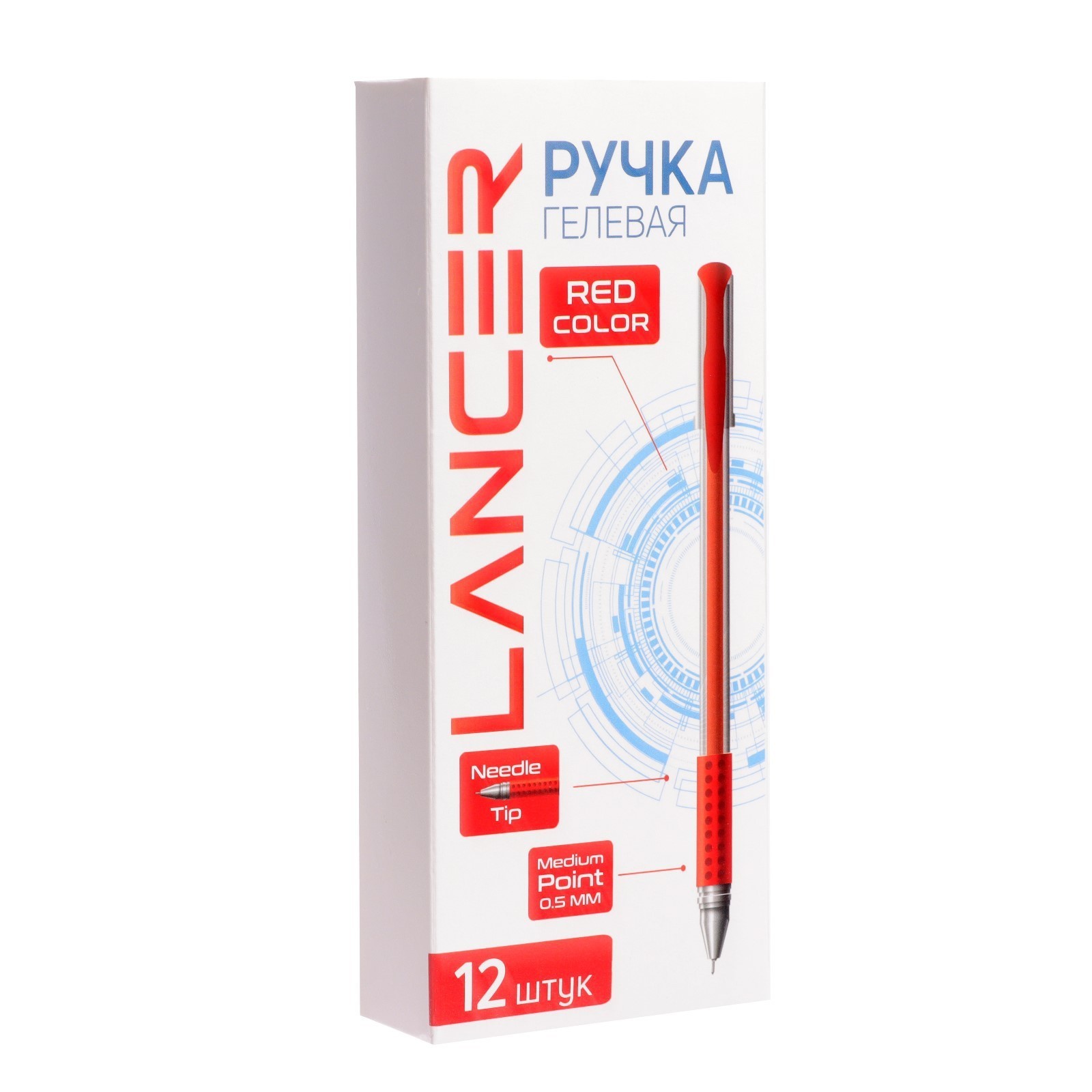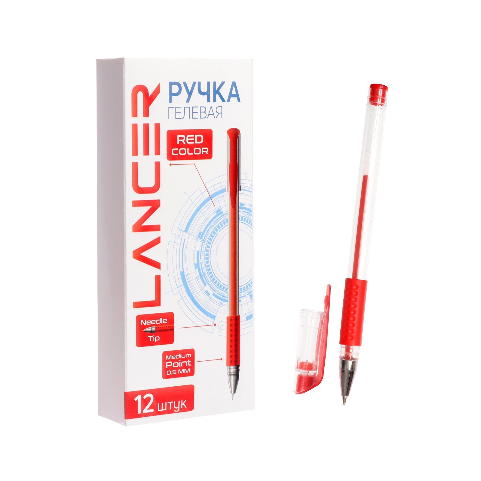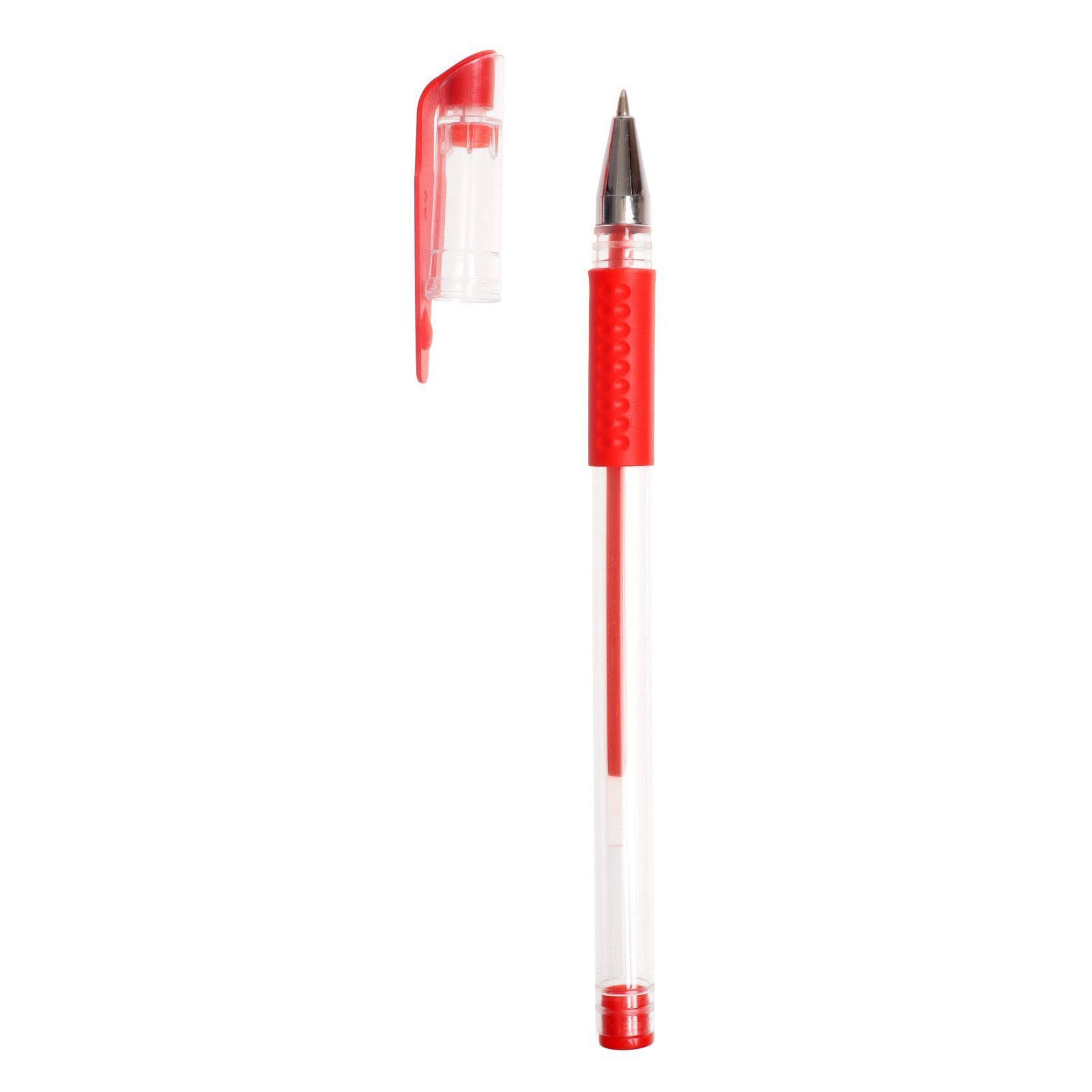 Ручка гелевая, 0.5 мм, стержень красный, прозрачный корпус, с резиновым держателем
