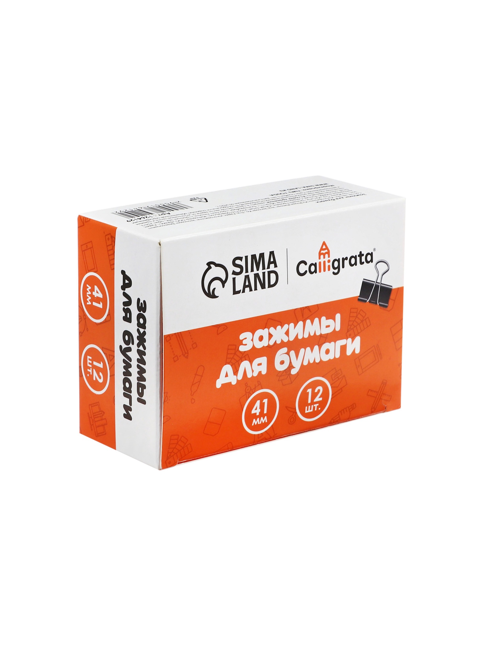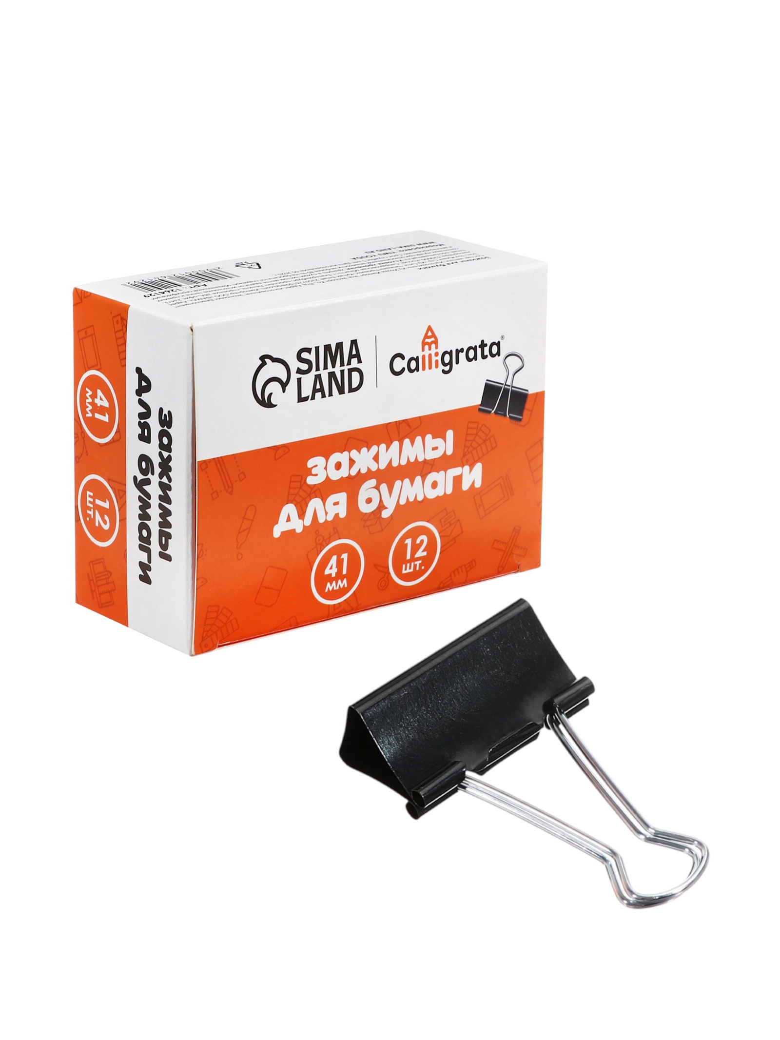 Набор зажимов для бумаг, чёрные, 41 мм, 12 штук, в картонной коробке