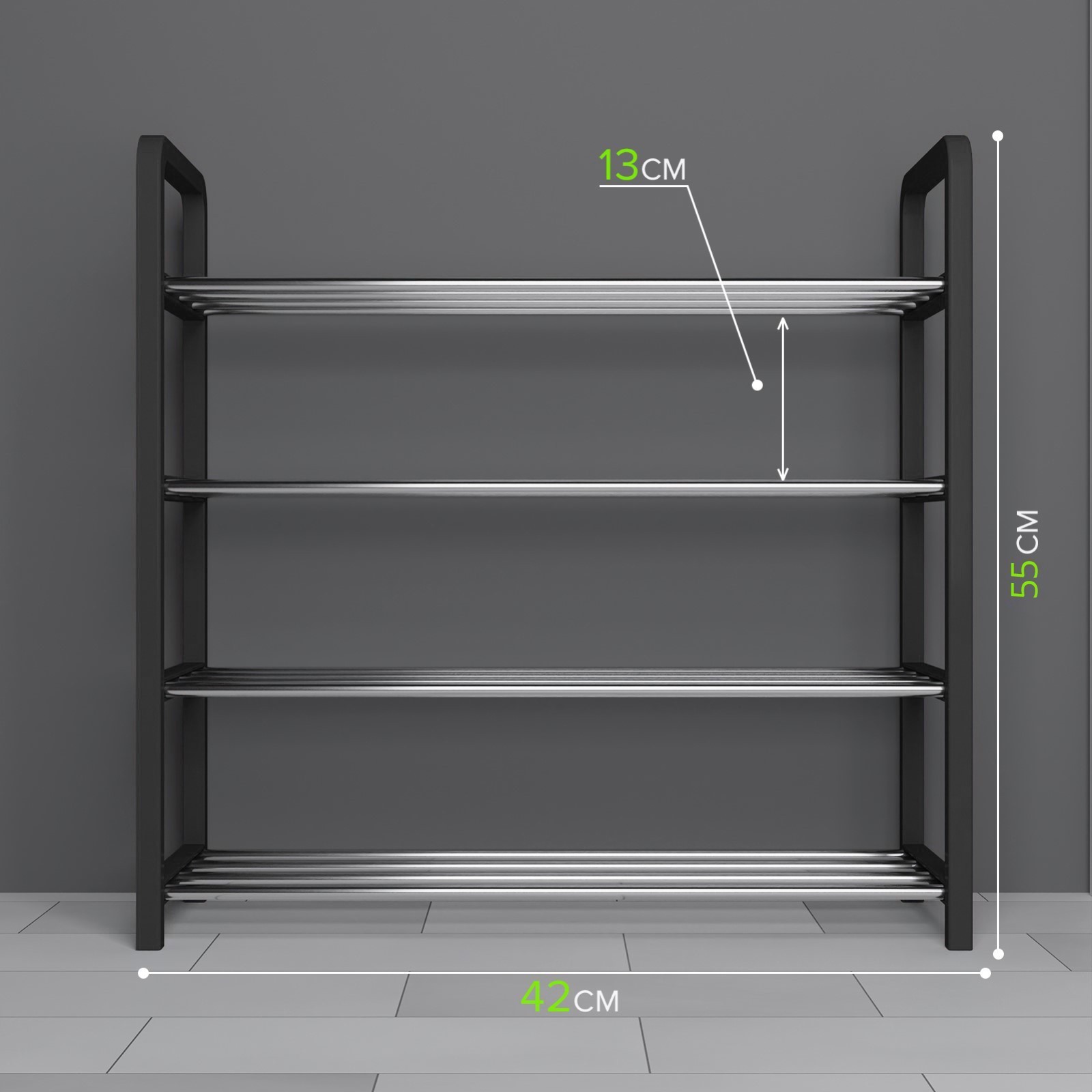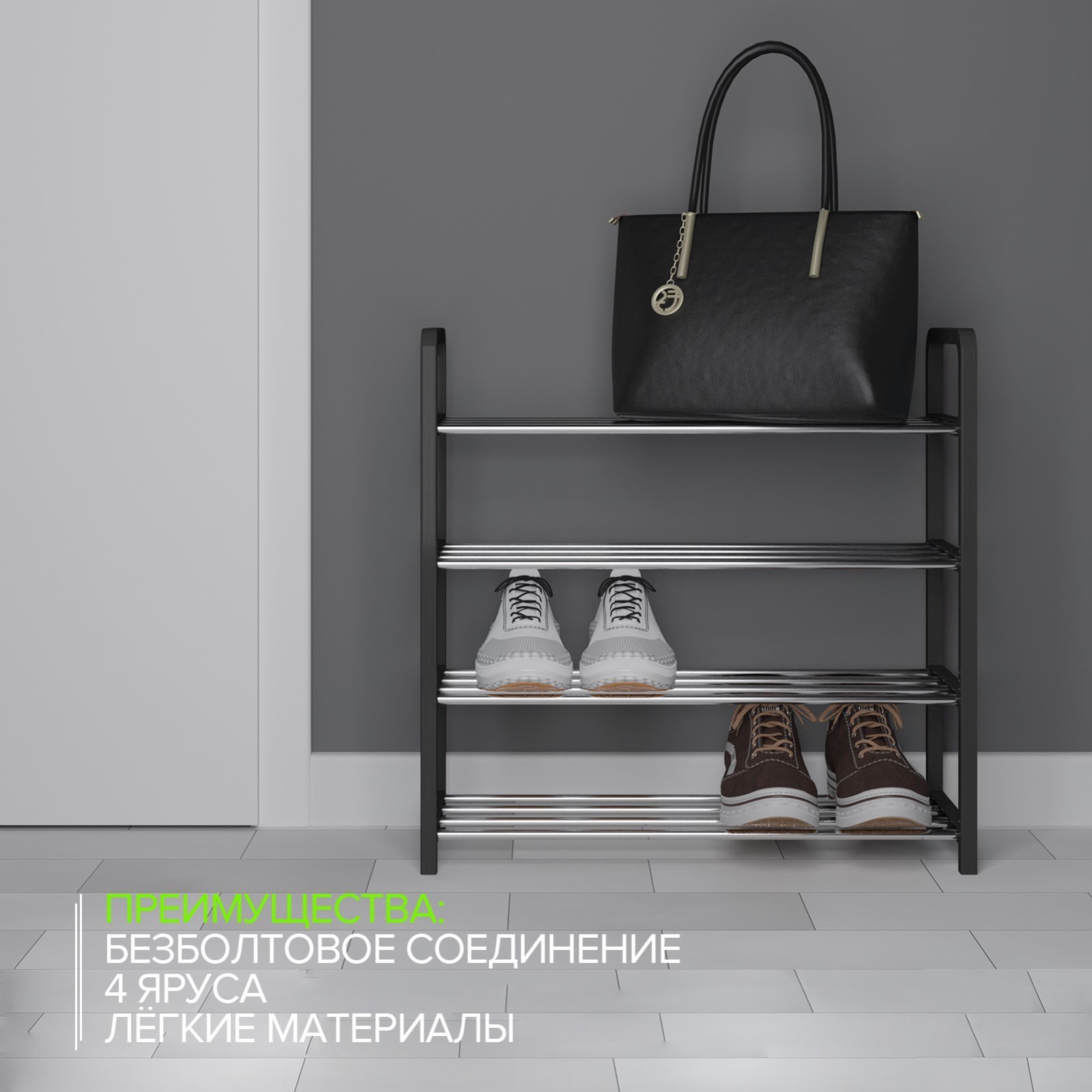 Обувница доляна, 4 яруса, 42x19x55 см, цвет чёрный