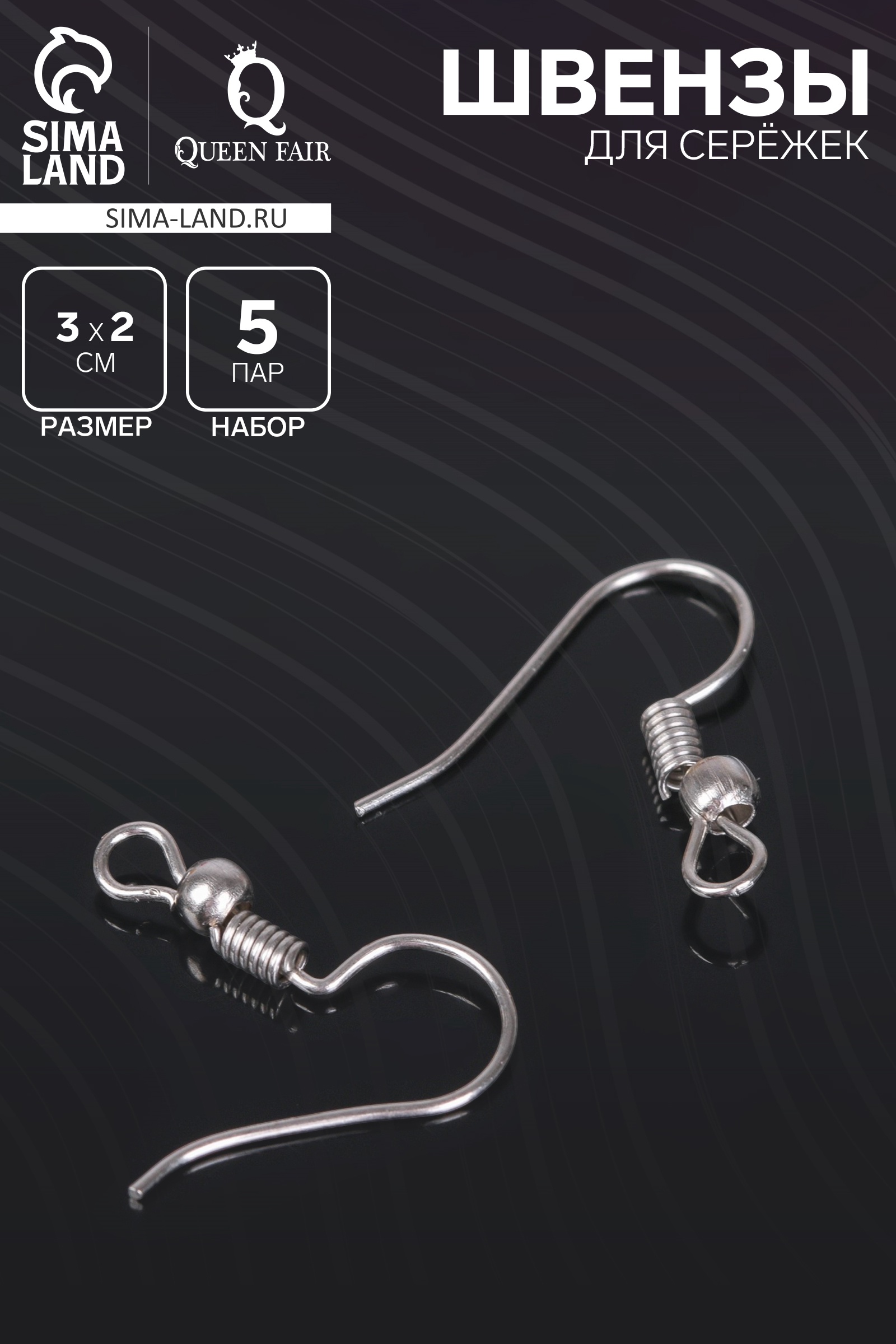 Швензы для сережек-крючки с бусиной (набор 5 пар), цвет серебро
