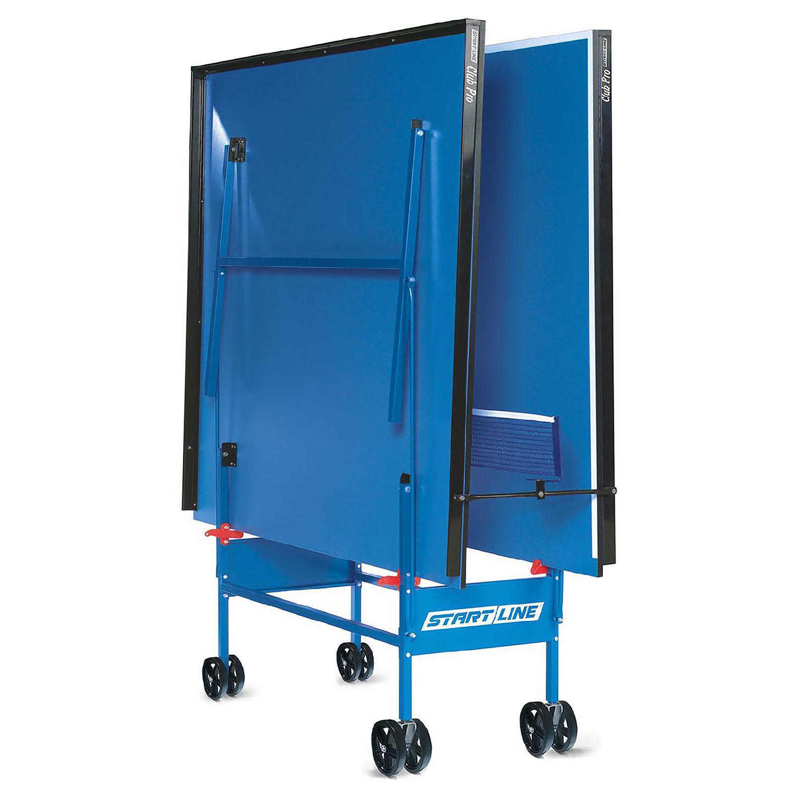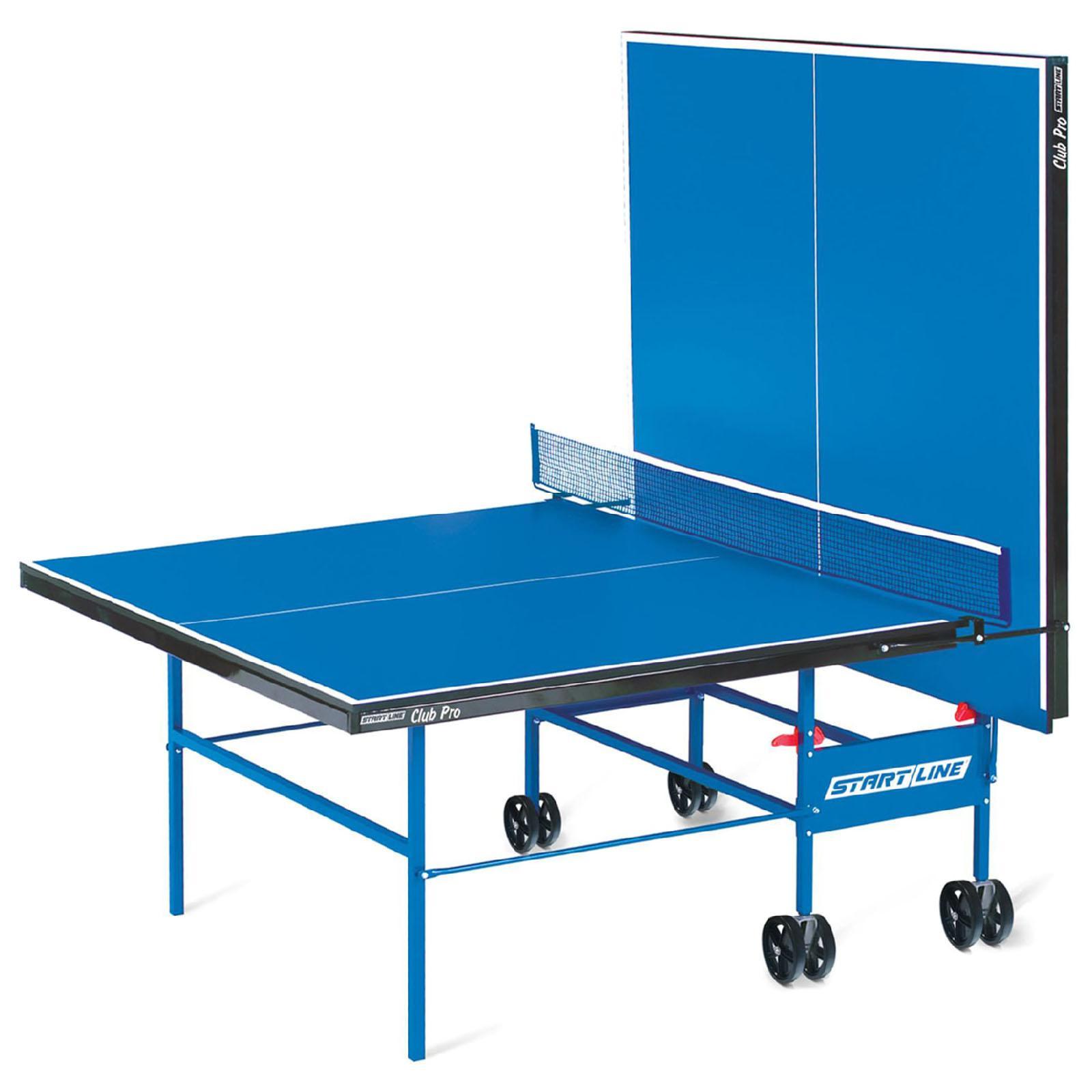 Стол теннисный start line club-pro, с сеткой. Теннисный стол Start line Club-Pro предназначен для профессиональных и любительских игр в помещениях. Подойдёт для частного использования, школ или спортивных секций. Модель имеет два варианта исполнения игрового поля. Конструкция стола легко устанавливается и складывается, имеет механизм самоблокировки. Размер теннисного стола соответствует международным стандартам ITTF. Особенности Материал игрового поля: ЛДСП толщиной 16 мм с меламиновым покрытием. Отличается высокой устойчивостью к влаге и механическим повреждениям, имеет антибликовые свойства. Материал канта игрового поля: ПВХ толщиной 0, 45 мм. Материал канта стола: металл толщиной 40 мм. Материал рамы: сталь из металлического профиля с полимерным покрытием. Транспортировочная система: двойные обрезиненные ролики диаметром 125 мм, одна сторона маневровая. Габариты стола Длина: 274 см. Ширина: 152, 5 см. Высота: 76 см. Вес: 67 кг. Габариты товара в упаковке Длина: 157 см. Ширина: 9 см. Высота: 141 см. Вес: 80 кг. Комплектация Встроенная сетка. Цвет: Синий Высота, см: 76 Уровень спорта: Тренировочный Материал столешницы: ЛДСП Размер столешницы, см: 274 х 152.5 Сетка в комплекте: Да Вид: Для закрытых помещений Особенности: Встроенная сетка Мобильность: Система роликов Конструкция: Складной  развернуть описание ▼