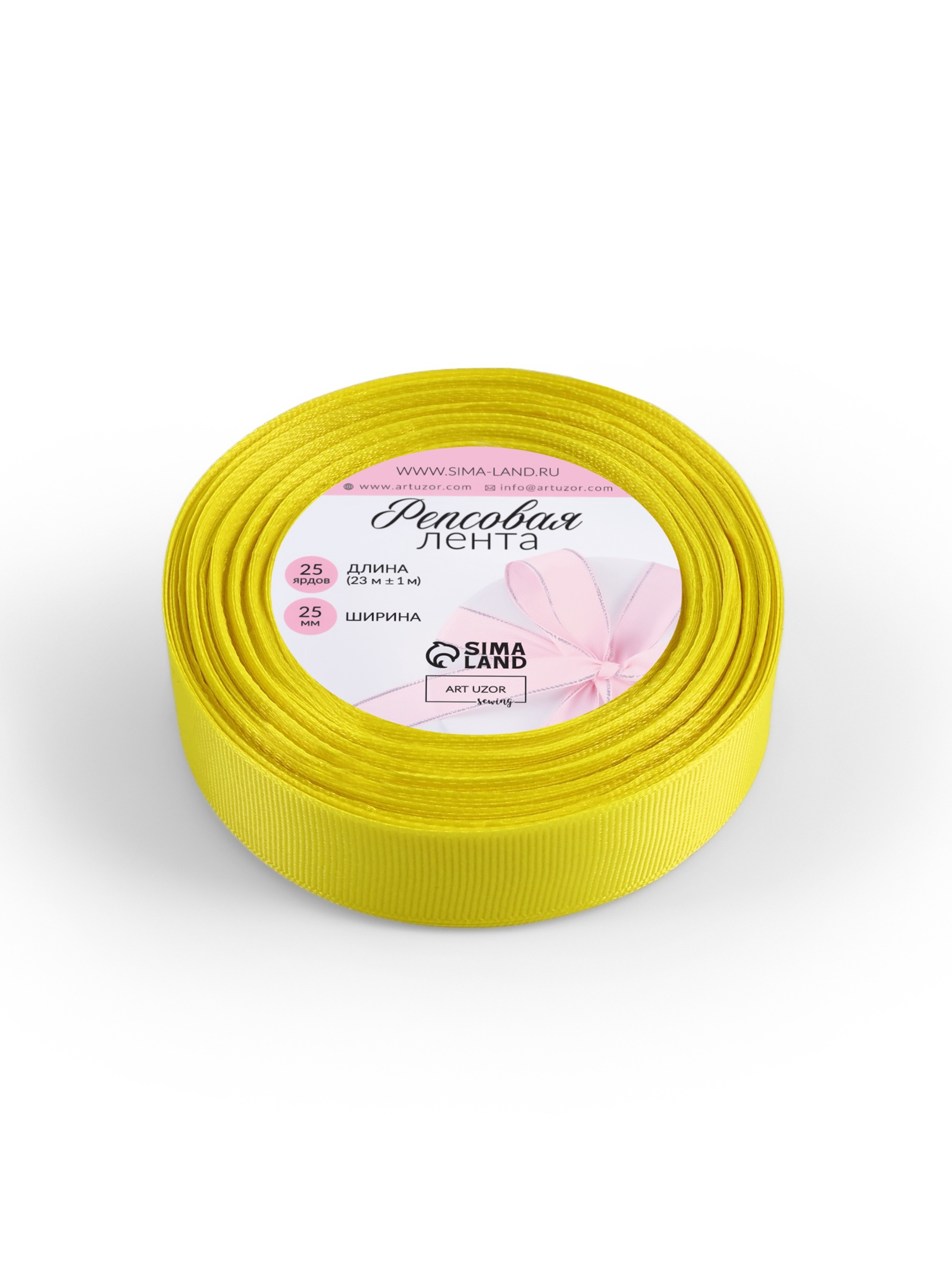 Лента репсовая, 25 мм, 23±1 м, жёлтая №15