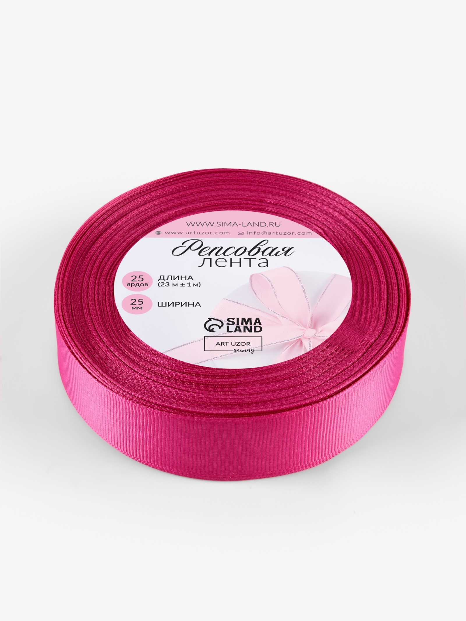 Лента репсовая, 25 мм, 23±1 м, ярко-розовая №27