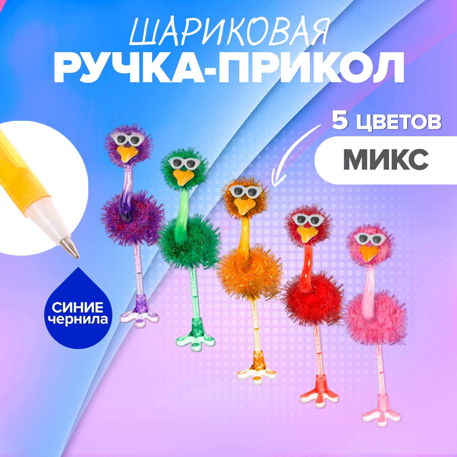 Ручка - прикол шариковая Calligrata «страус в очках», микс