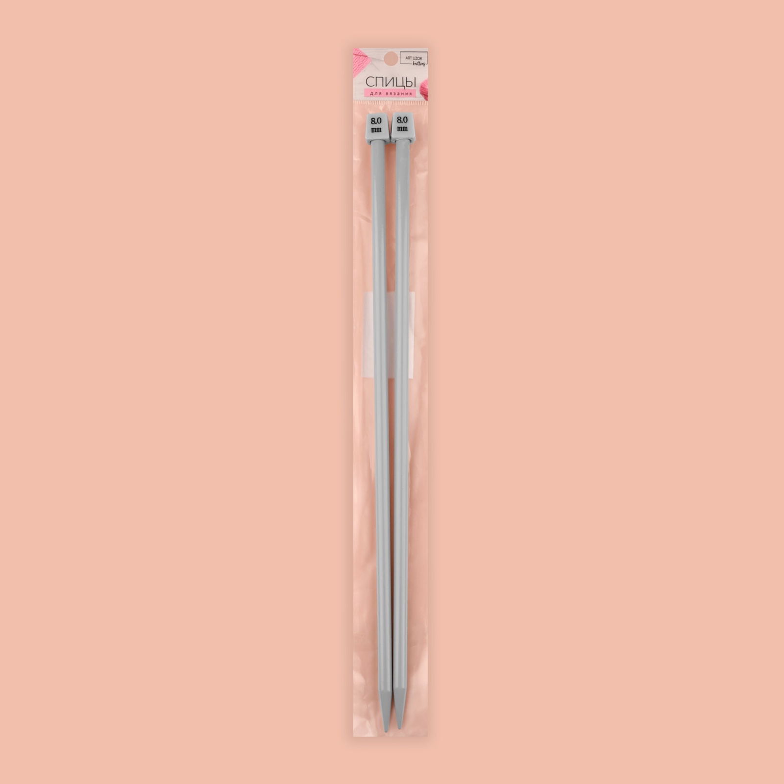 Спицы для вязания, прямые, с тефлоновым покрытием, D=8 мм, 35 см, 2 шт.