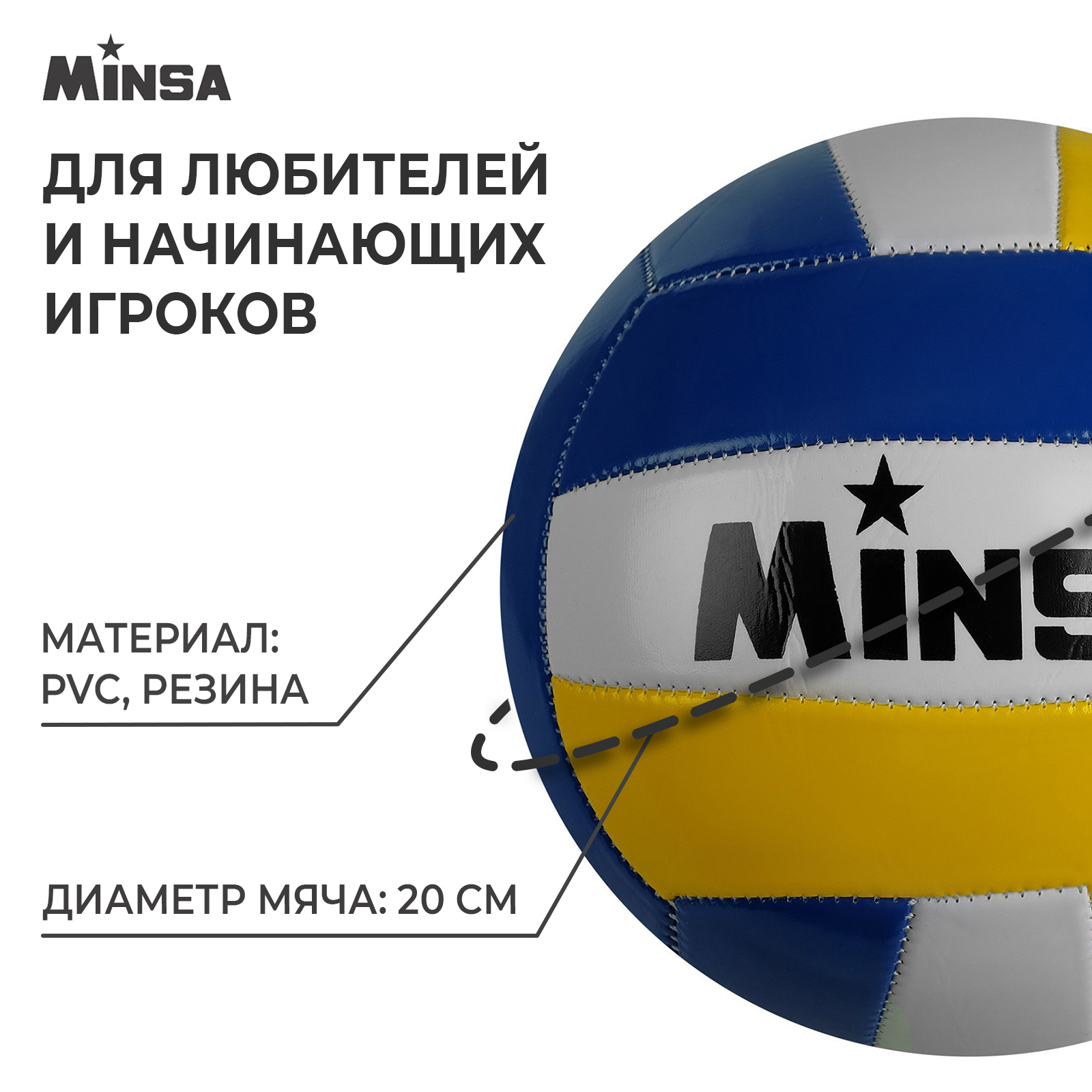 Волейбольный мяч minsa, машинная сшивка, 18 панелей, р. 5, pvc. Волейбольный мяч предназначен для игры на различных типах площадок, в зале и на песке. Данная модель подходит для любителей и начинающих игроков. Характеристики Материал покрышки: ПВХМатериал камеры: резинаКоличество панелей: 18Тип соединения: машинная сшивкаРазмер мяча: 5Уровень: любительский Цвет: Разноцветный Размер мяча: 5 Количество панелей: 18 Диаметр, см (+/- 7 мм): 21 Вес, г (+/- 15 г): 265 Материал: ПВХ Тип соединения панелей: Машинная сшивка Уровень спорта: Любительский Материал камеры: Резина  развернуть описание ▼