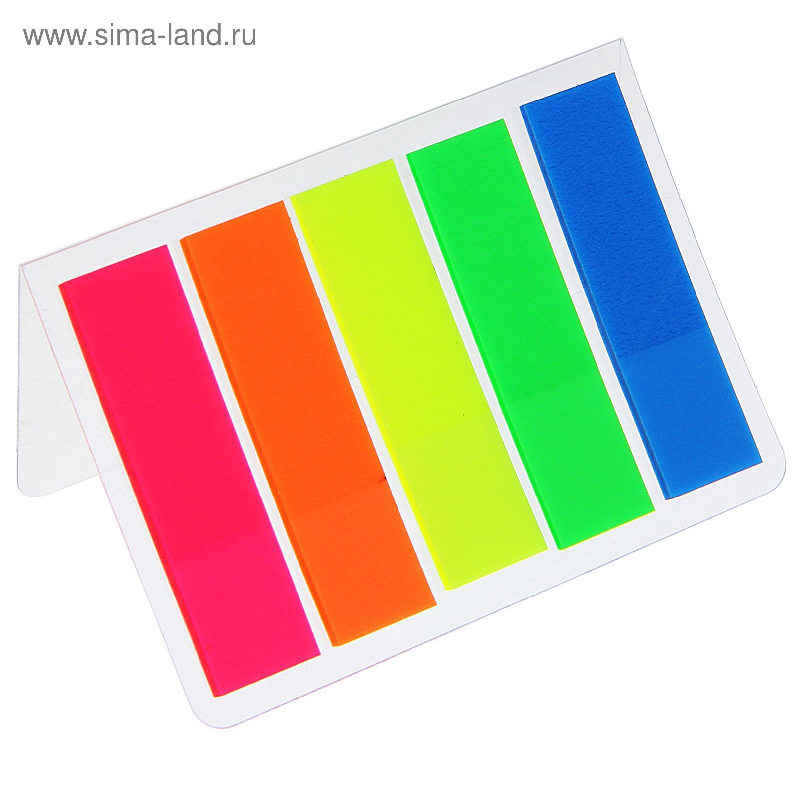 Блок - закладка с липким краем,12 45 мм, пластик, 5 цветов по 25 листов, флуоресцентный, в блистере