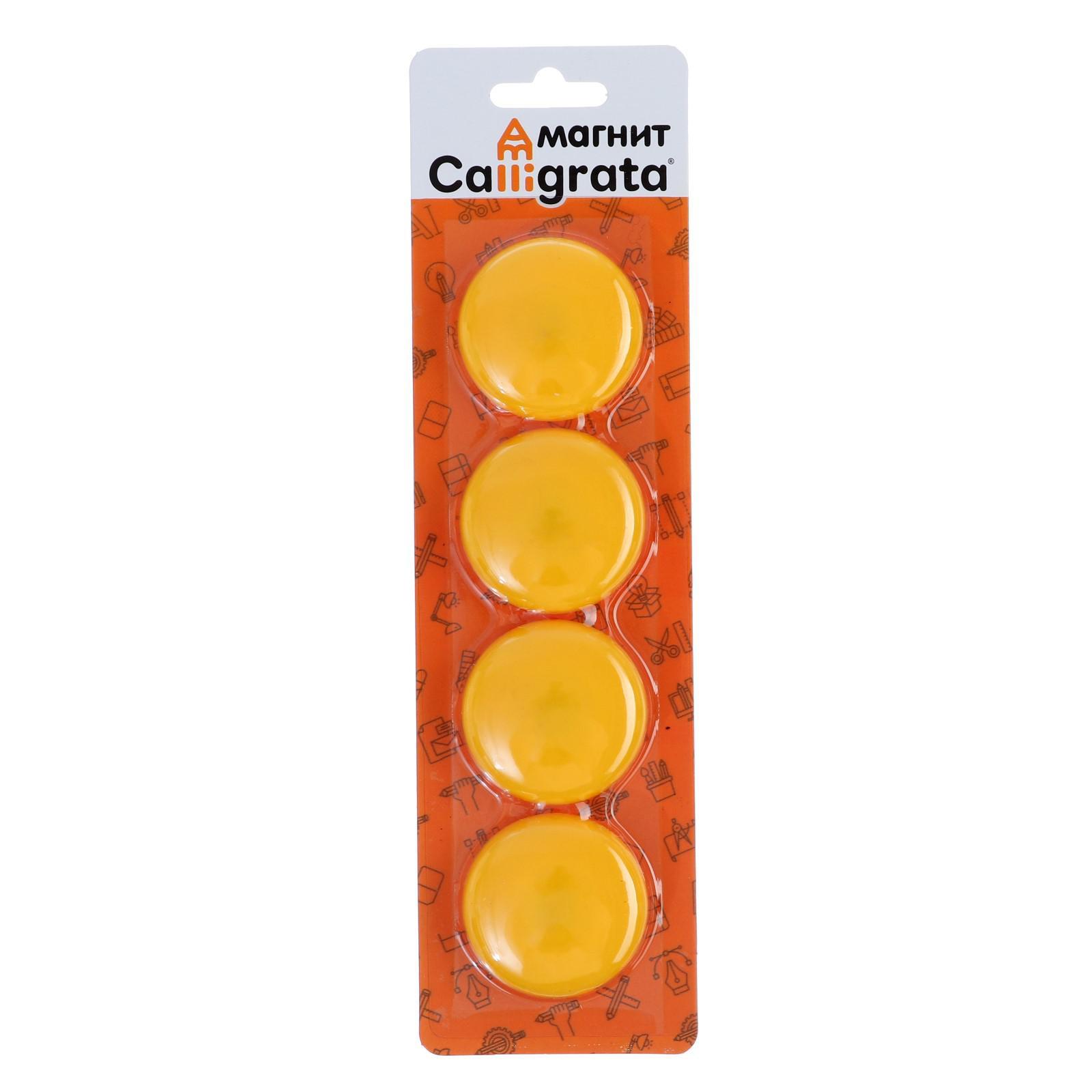 Магниты для доски, D=4 см, набор 4 штуки, блистер, жёлтые