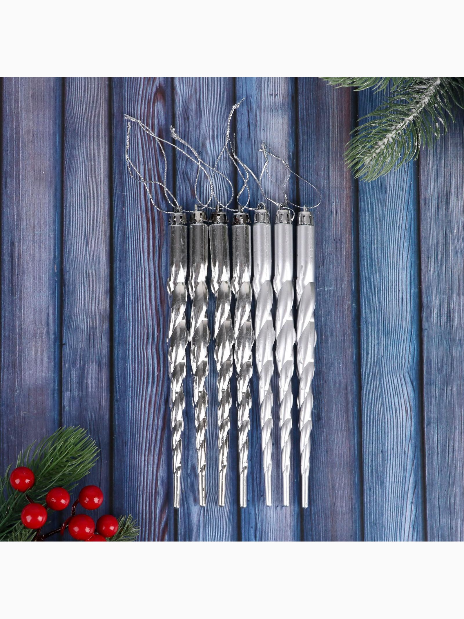 Ёлочные игрушки набор 7 шт. «сосулька - завитулька», 19 см, серебристый