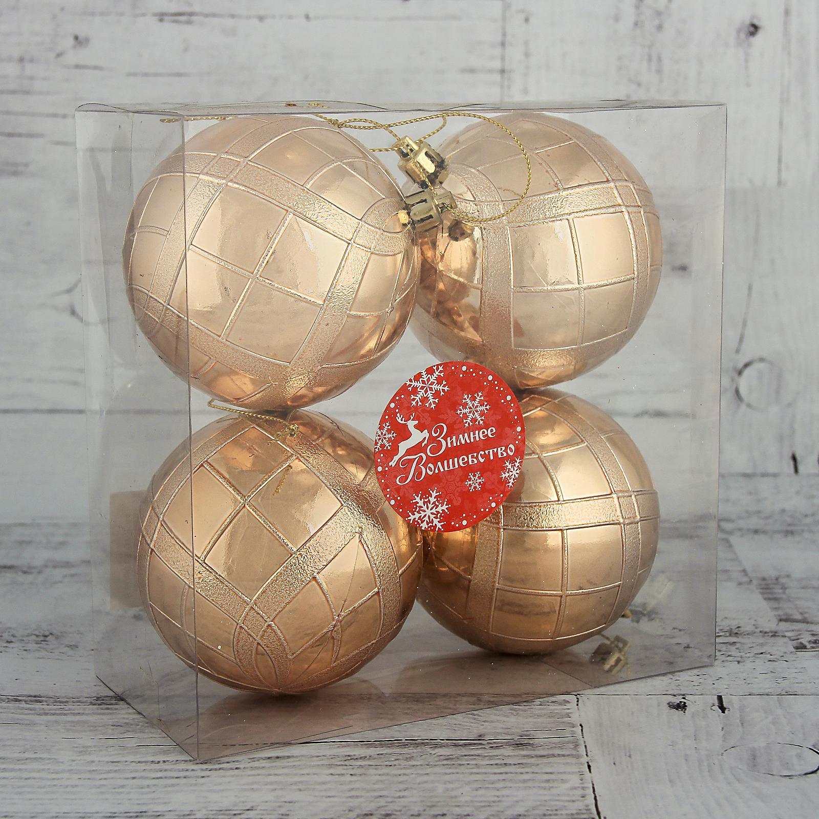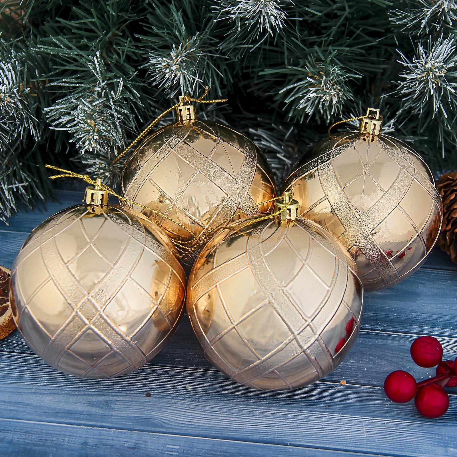 Ёлочные игрушки «переплёт», шары новогодние, D=8 см, набор 4 шт., золотистый