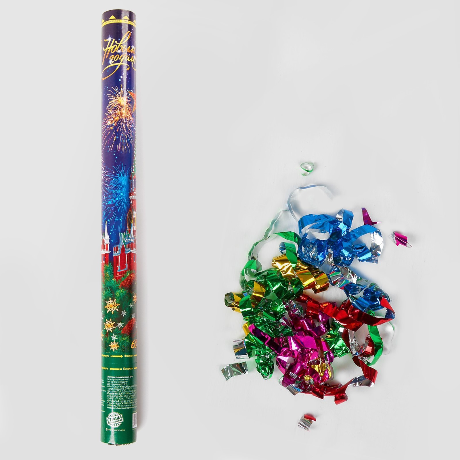 Пневмохлопушка поворотная «с новым годом! куранты», конфетти, фольга-серпантин, 60 см