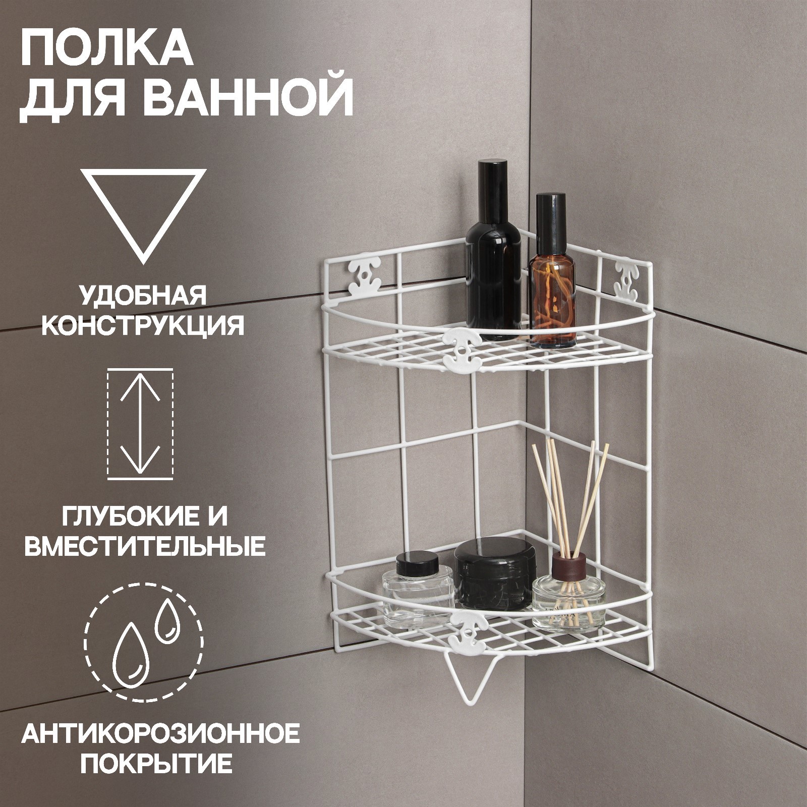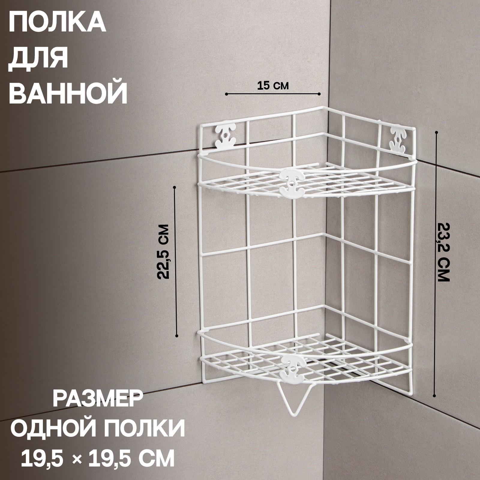 Полка угловая двухъярусная доляна, 20x20x33 см, цвет белый