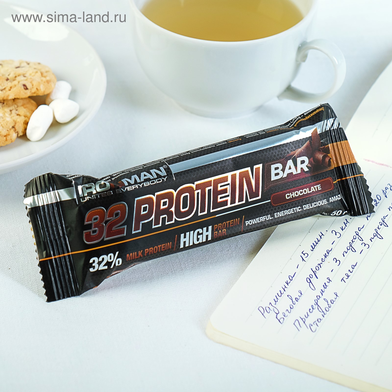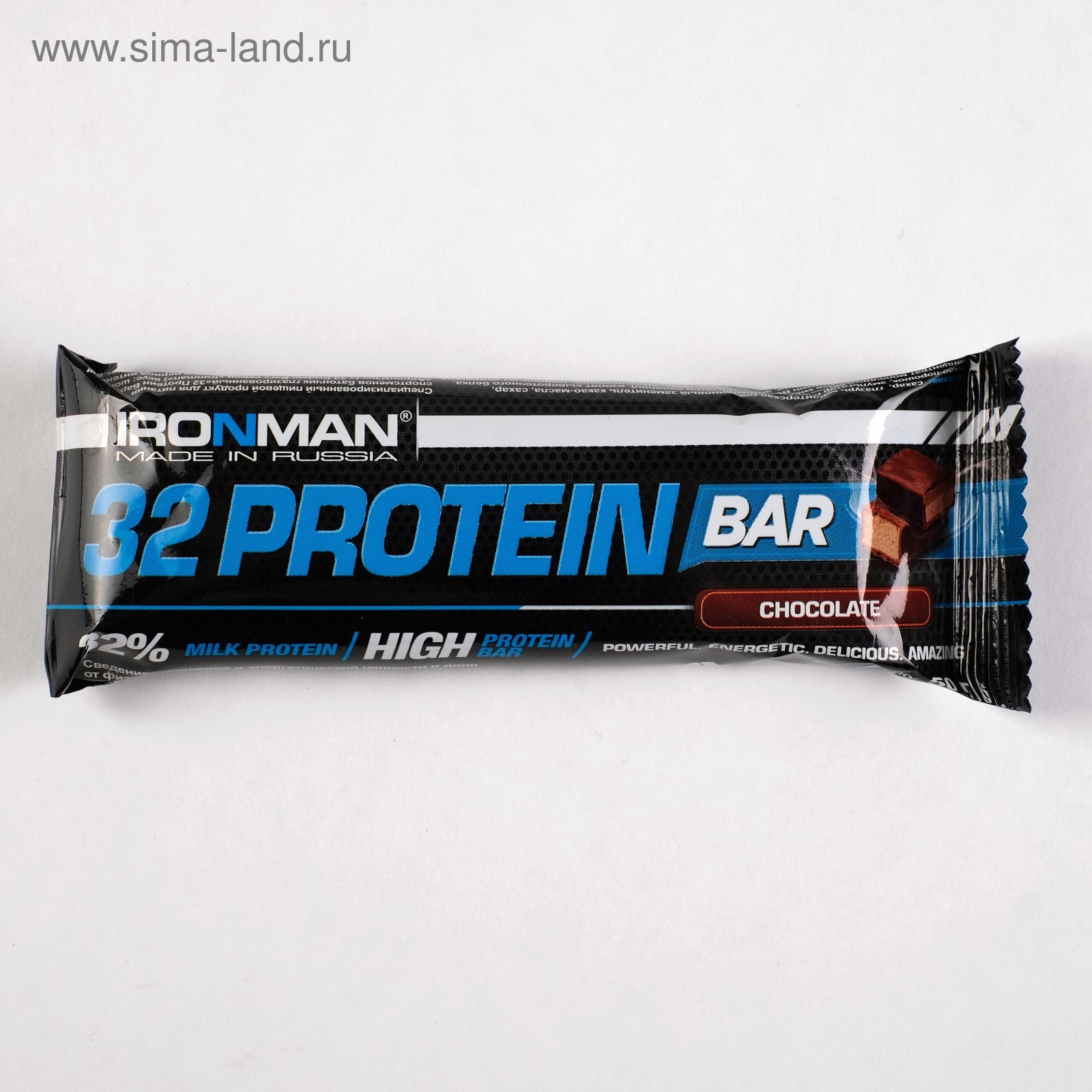Батончик "32 protein" . 50 г шоколад/тёмная глазурь. Спортивные батончики—это удобные и эффективные заменители питания, являющиеся прекрасным источником легкоусвояемых ценных протеинов, простых и сложных углеводов, аминокислот, минералов, витаминов и других спортивных добавок. Жиры, г: 3.8 Срок годности, мес: 12 Белки, г: 16 Углеводы, г: 23 Вес нетто, г: 50 Энергетическая ценность, ккал: 188 Вкус: Шоколад : 0 Вид: Протеиновый Температурное ограничение: Да Продукты: Да  развернуть описание ▼