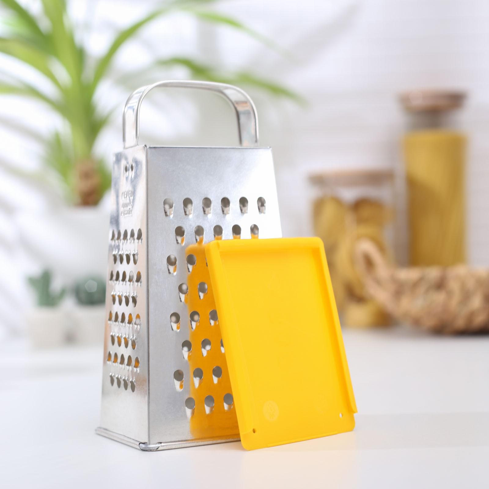 Тёрка с крышкой-дозатором и стороной для сыра, металлическая ручка, цвет микс