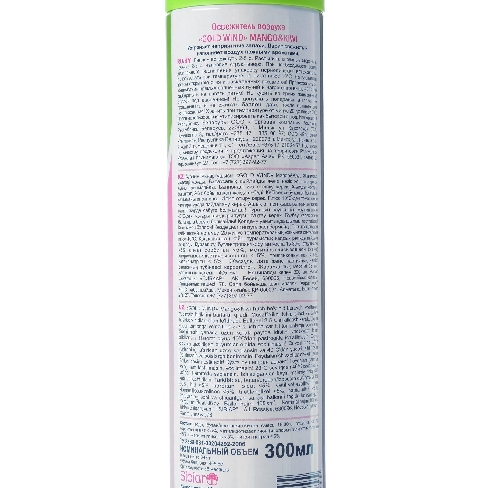 Освежитель воздуха "голд винд" 2 в 1 манго и киви, 300 мл