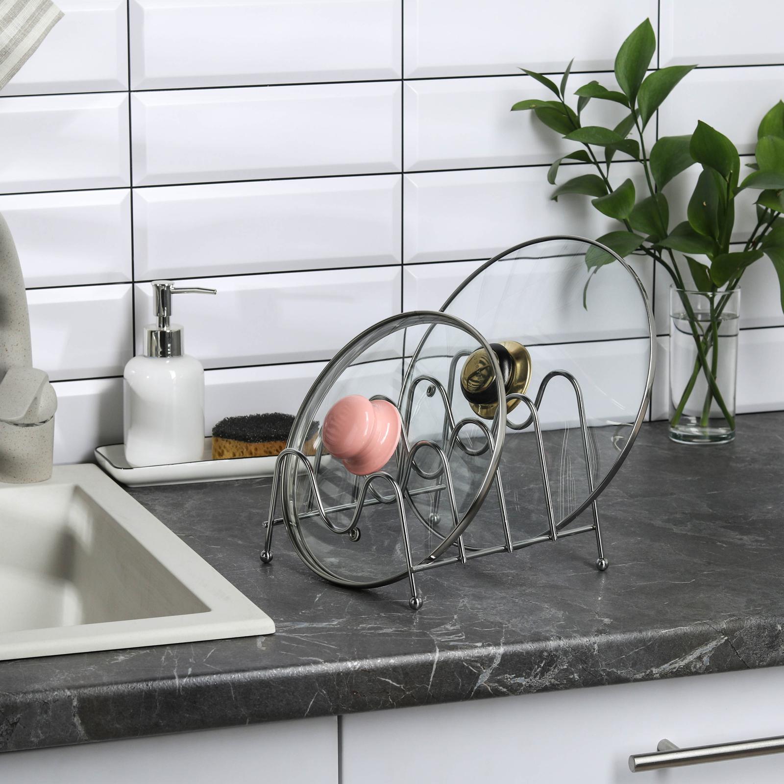 Подставка для крышек доляна, 20x18x15 см, 4 предмета, цвет хром