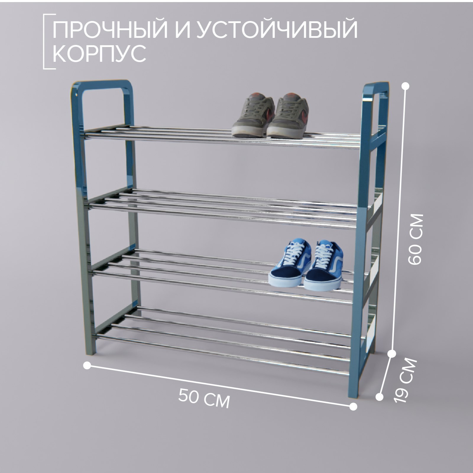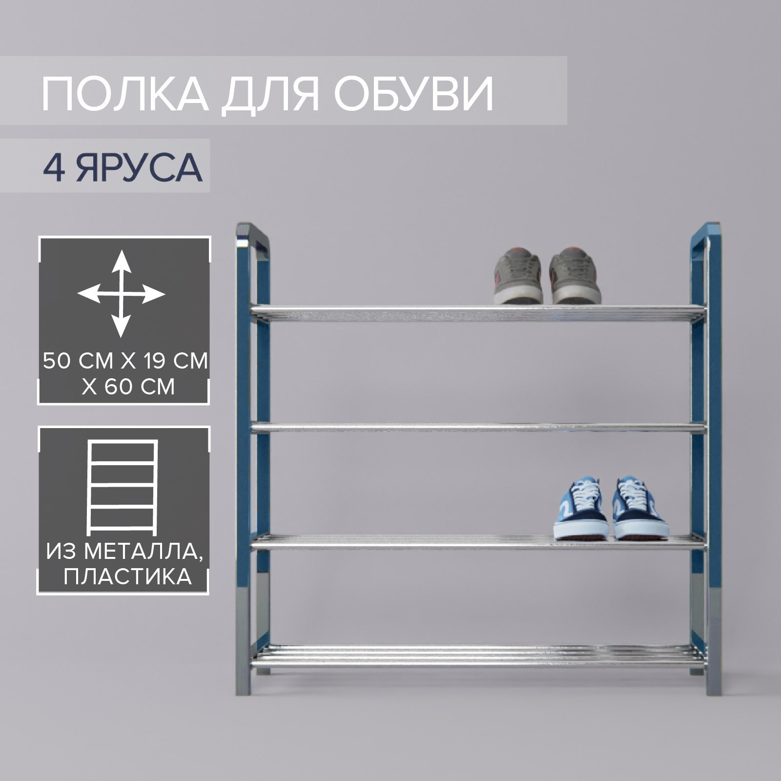 Обувница доляна, 4 яруса, 50x19x59 см, цвет синий