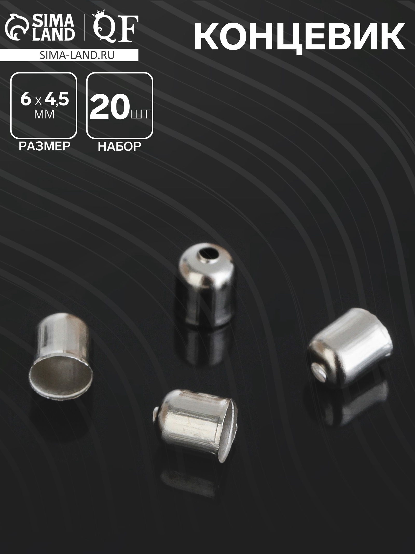 Концевик, 6 4,5 мм (набор 20 шт.), см-300, цвет серебро