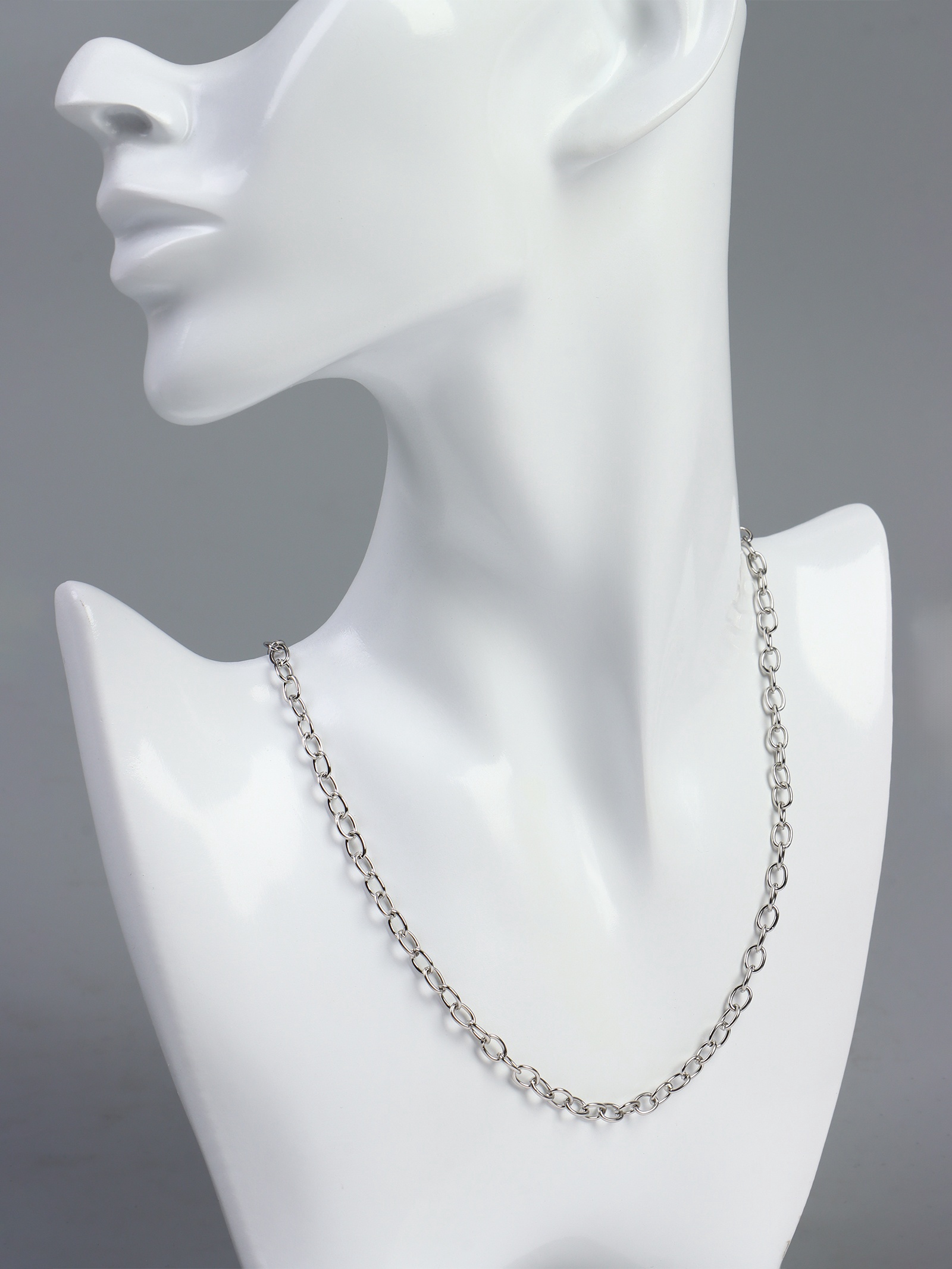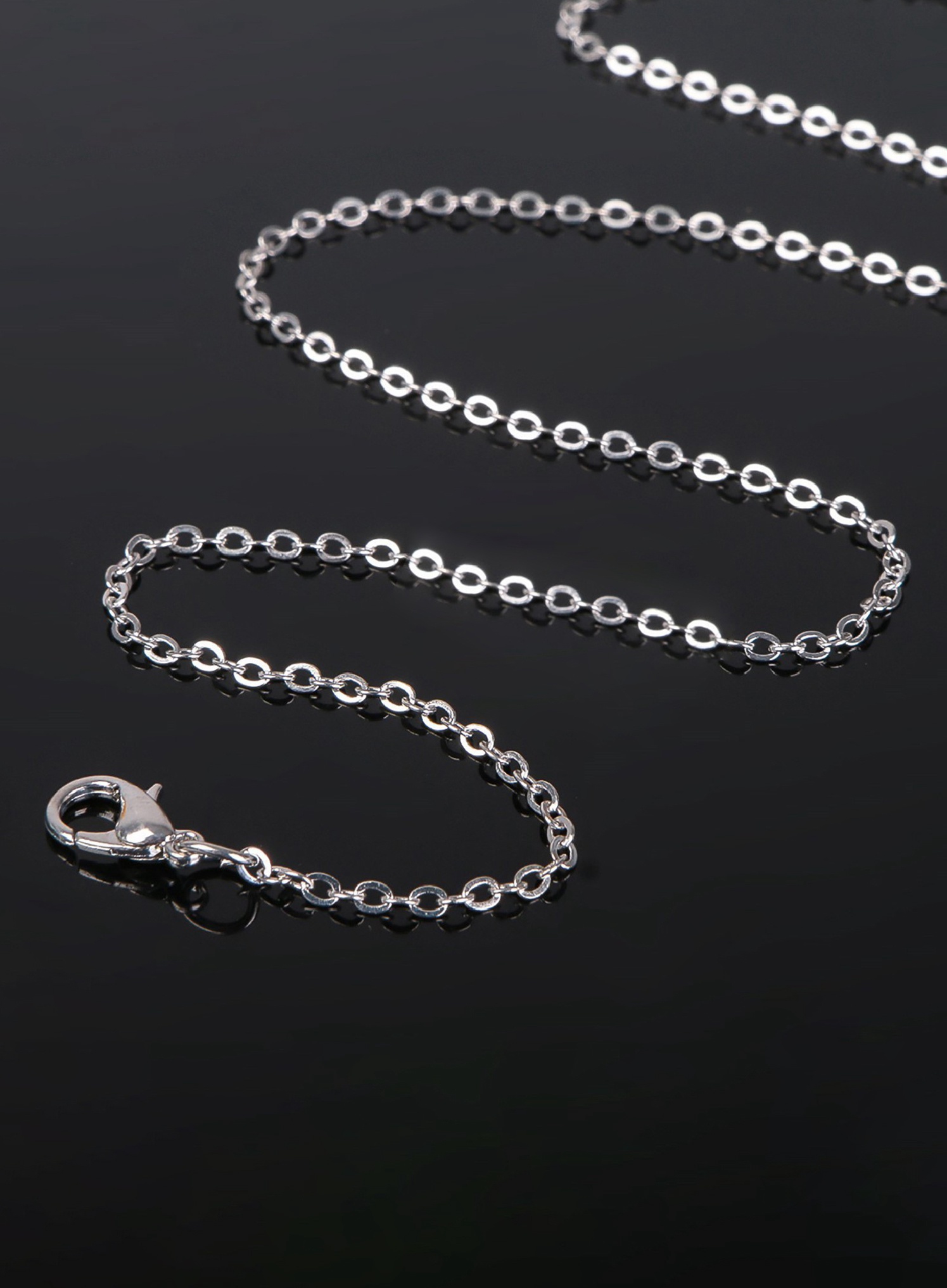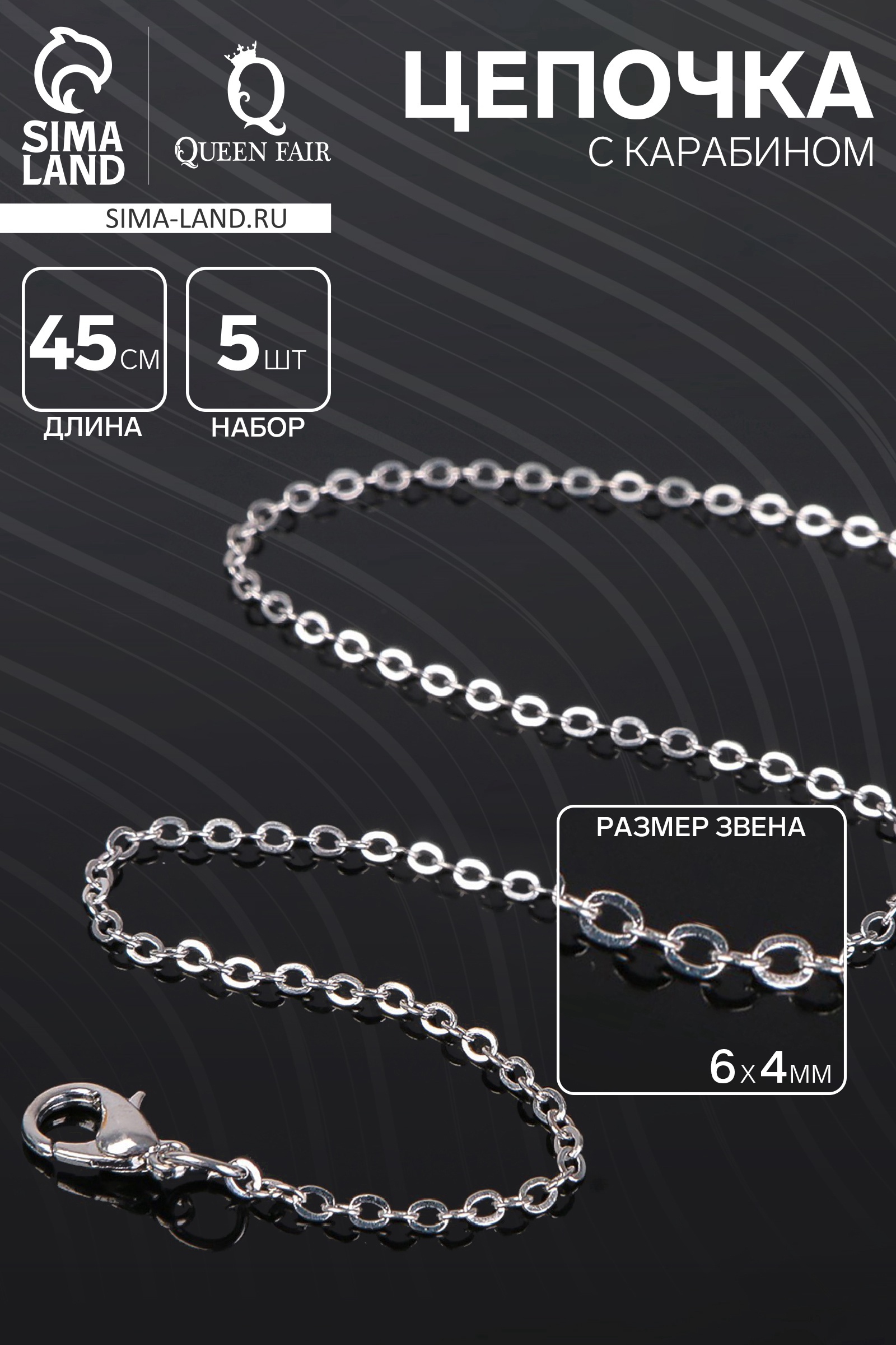 Цепочка с карабином, набор 5 шт. L=45 см, мелкое плетение, цвет серебро