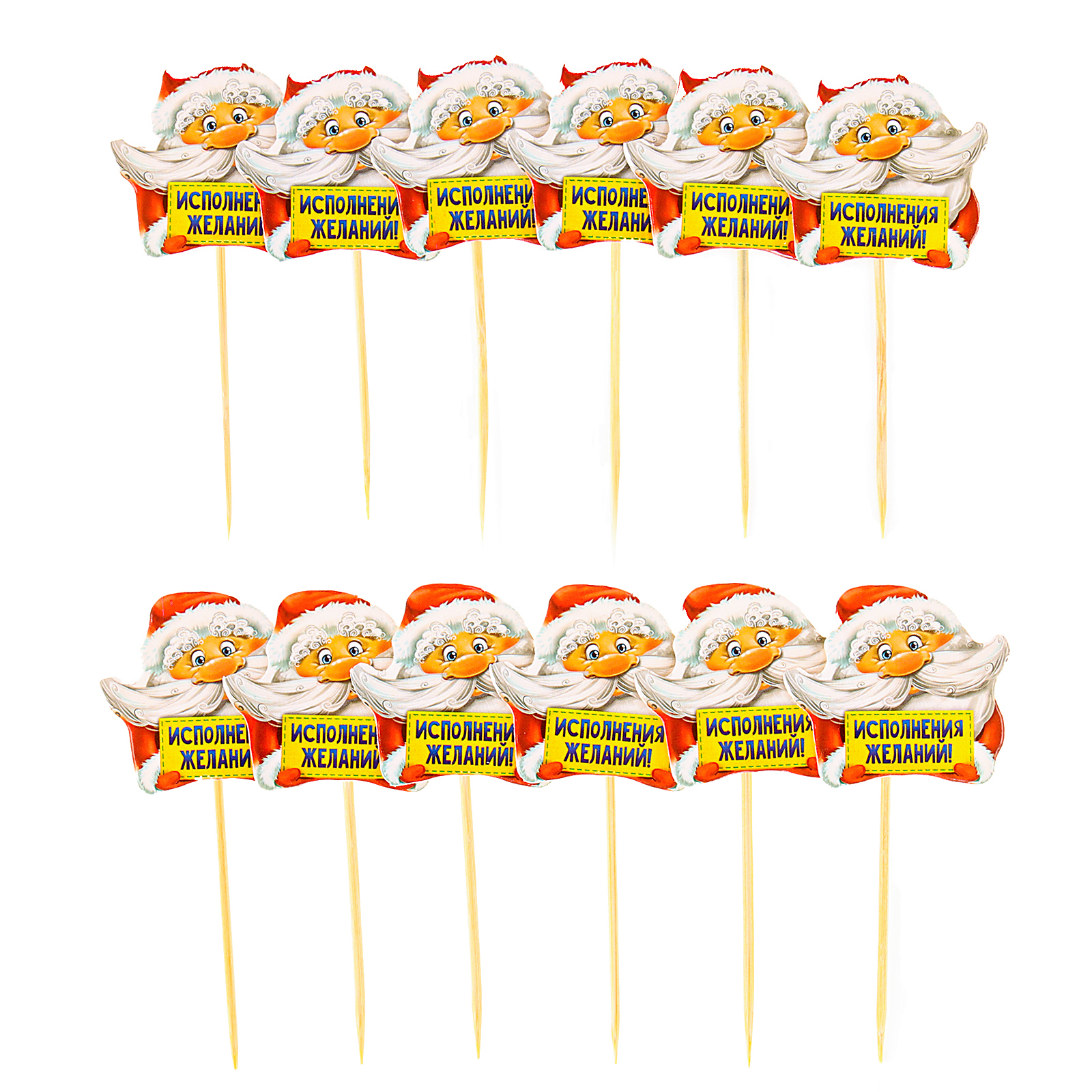 Шпажки для канапе новогодние «исполнения желаний», дедушка мороз, набор 12 шт. Шпажки для канапе новогодние «Исполнения желаний», Дедушка Мороз, набор 12 шт создадут новогоднюю атмосферу за вашим столом. Эти чудесные декорации преобразят блюда и станут прекрасным дополнением не только к классическим канапе, но и к салатам, десертам, фруктам и даже напиткам. С такими аксессуарами еда будет выглядеть ещё аппетитнее и наряднее, а ваши гости непременно почувствуют эффект правильно организованного праздника! Цвет:Разноцветный|Длина, см:11|Высота держателя, см:5|В наборе, шт.:12|Символ года:Нет|Тематика праздника:Новый год|Материал:Дерево|Страна:Китай  развернуть описание ▼