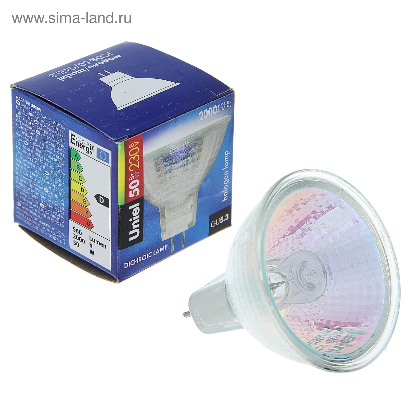 Лампа галогенная Uniel, Gu5.3, 50 вт, 230 в