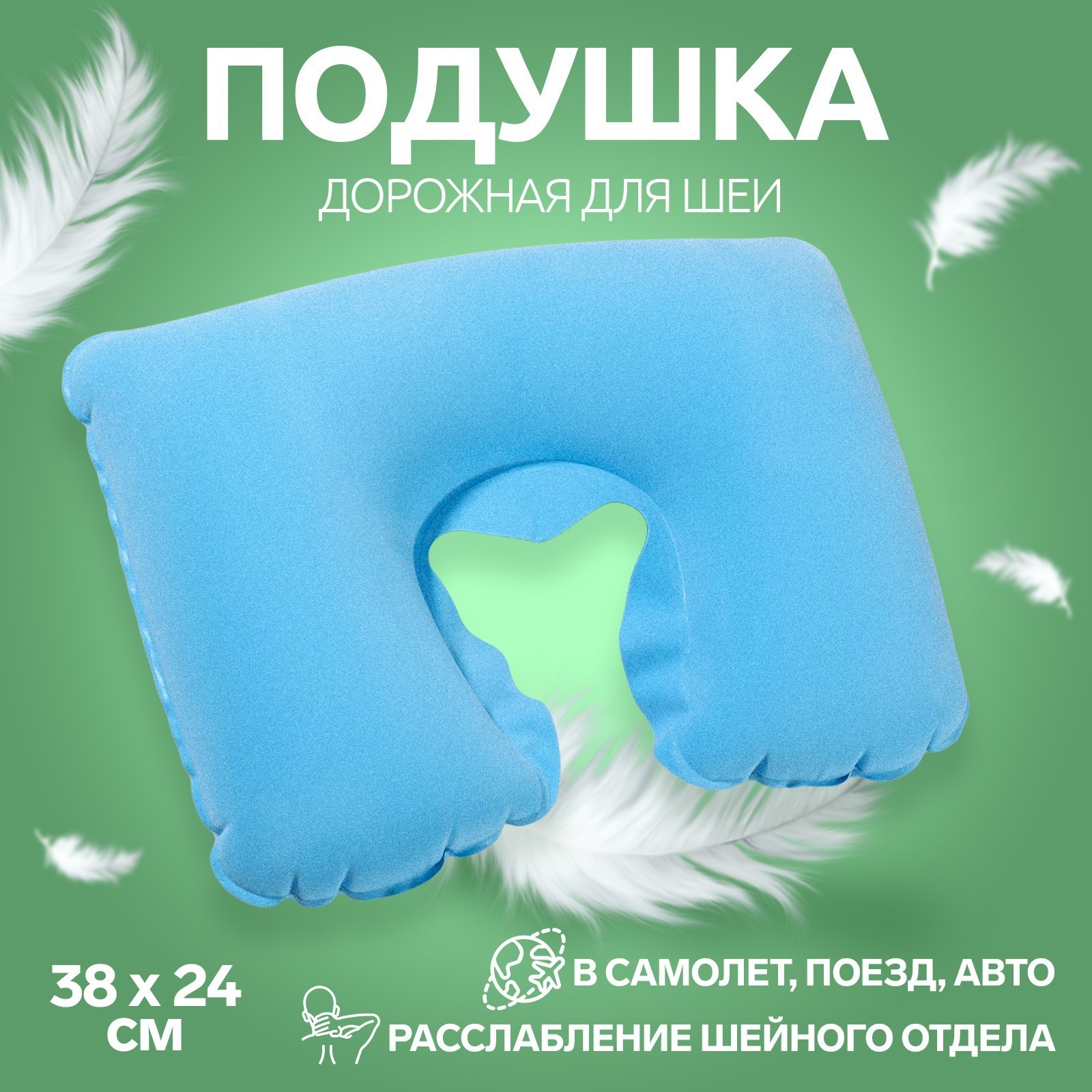Подушка для шеи дорожная, надувная, 38 X 24 см, цвет голубой