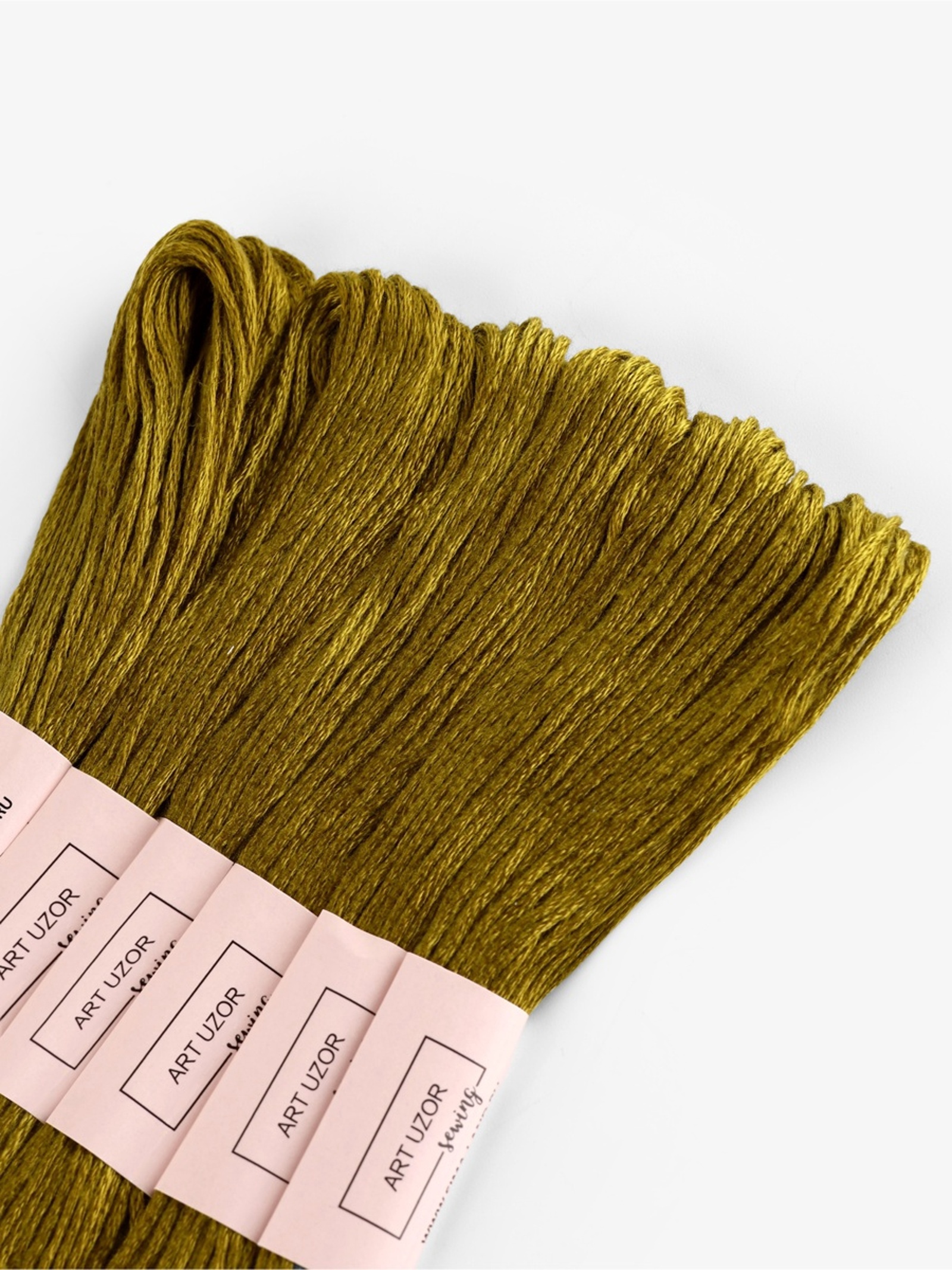 Набор оливковых ниток мулине для вышивания — шесть мотков по 8 метров теплого природного оттенка. Эти полиэстеровые нити с мягким блеском идеально передают цвет весенней листвы, оливковых ветвей и лесного мха в ваших работах.