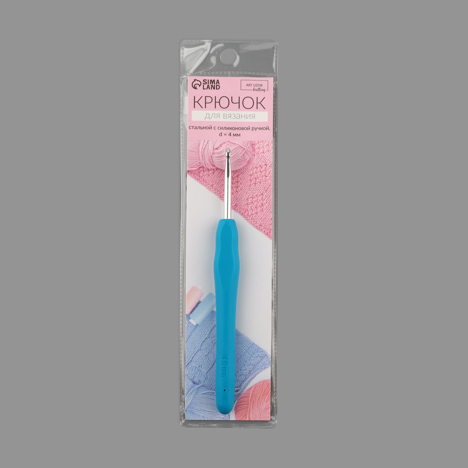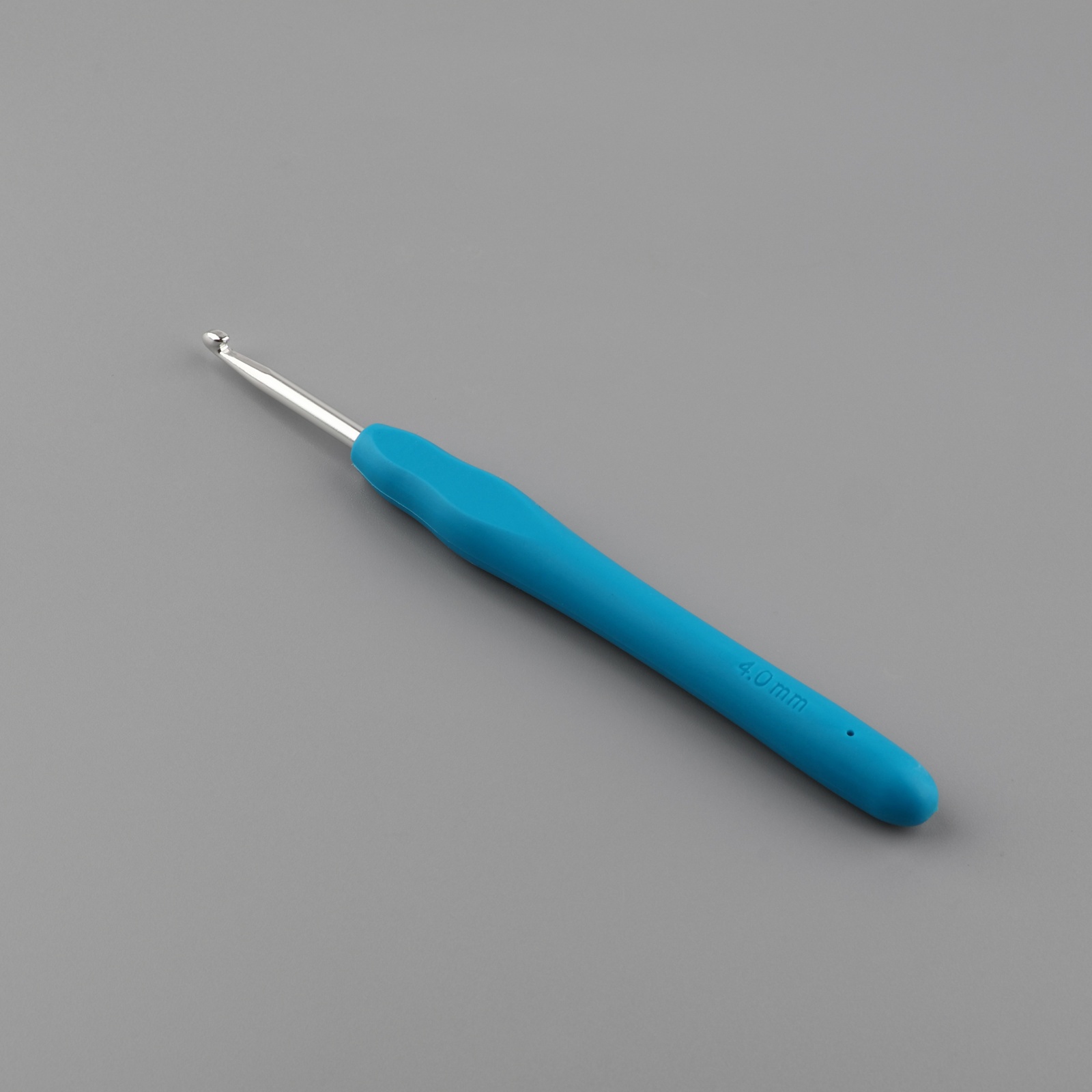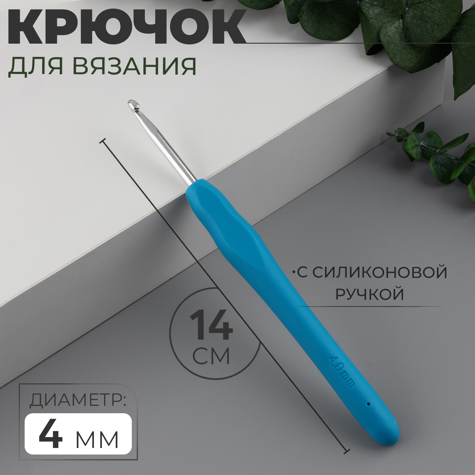 Крючок для вязания, с силиконовой ручкой, D=4 мм, 14 см, голубой