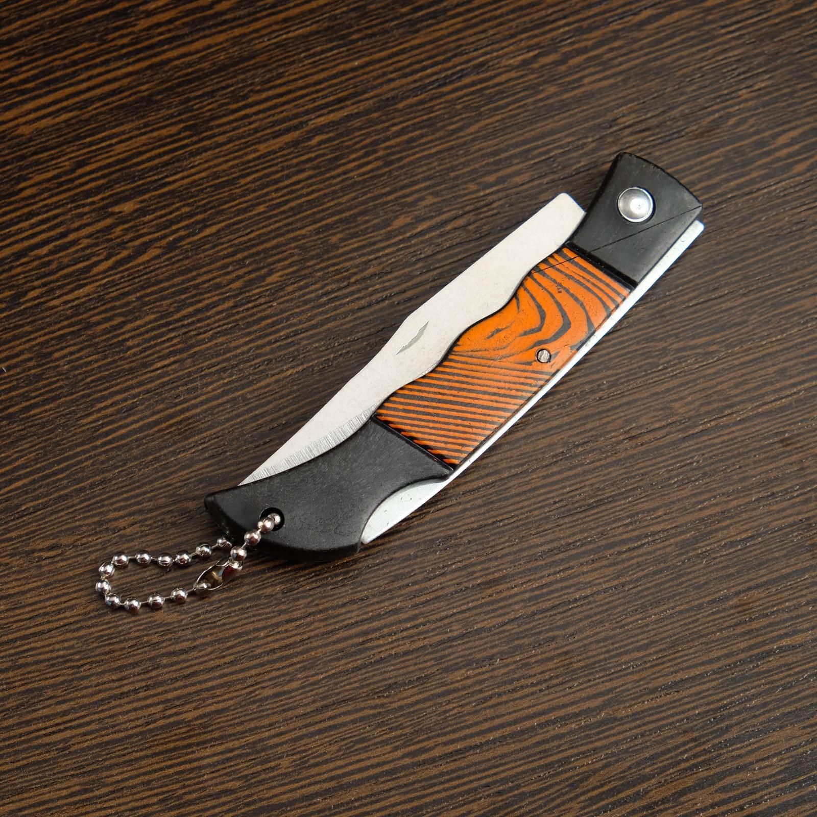 Нож перочинный складной "полосы" 14,6см, клинок 66мм/1,2мм, с цепью. Нож – неотъемлемый атрибут настоящего мужчины. Издревле ножи и клинки вручались знатным особам за проявление отваги и чести на военной службе. Такие дары очень ценились и становились семейными реликвиями. Сегодня нож - это прекрасный подарок, который может стать началом коллекции, будет полезен в быту и незаменимым на охоте. Длина лезвия, см: 7 Твёрдость лезвия, HRC: 46 Материал ручки: Пластик Фиксатор: Да Сталь: 2CR13 Тип ножа: Складной неавтоматический  развернуть описание ▼
