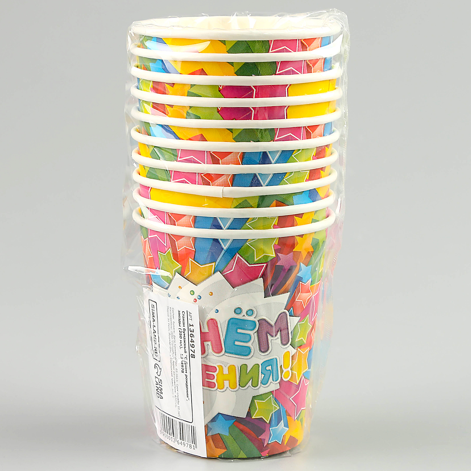 Стакан одноразовый бумажный "с днем рождения"звезды 250 мл