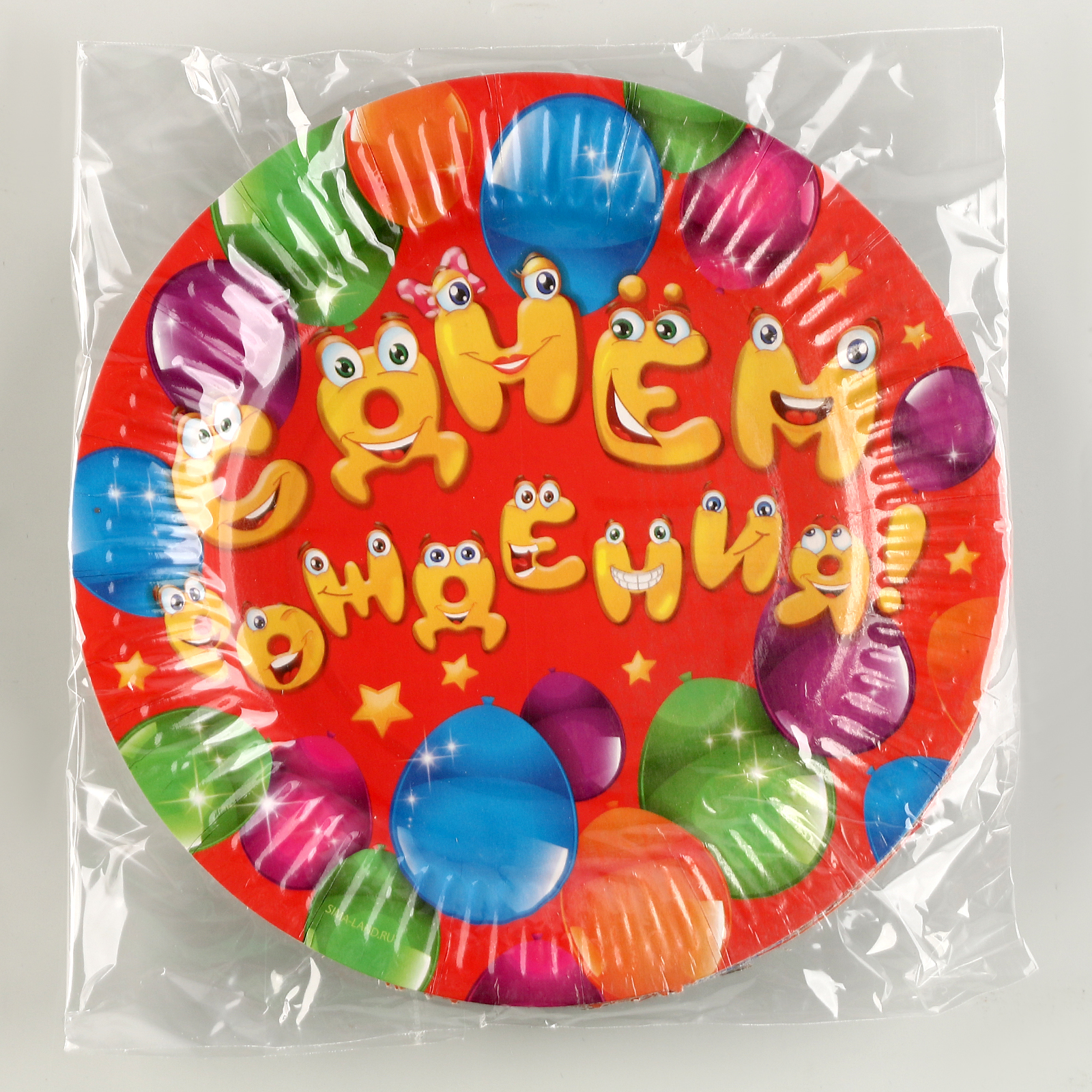 Тарелка одноразовая бумажная "с днем рождения" веселые шары (18 см)