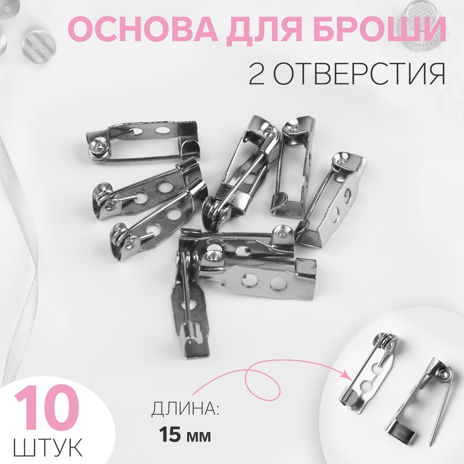Основа для броши, 2 отверстия, 15 мм, 10 шт., цвет серебряный