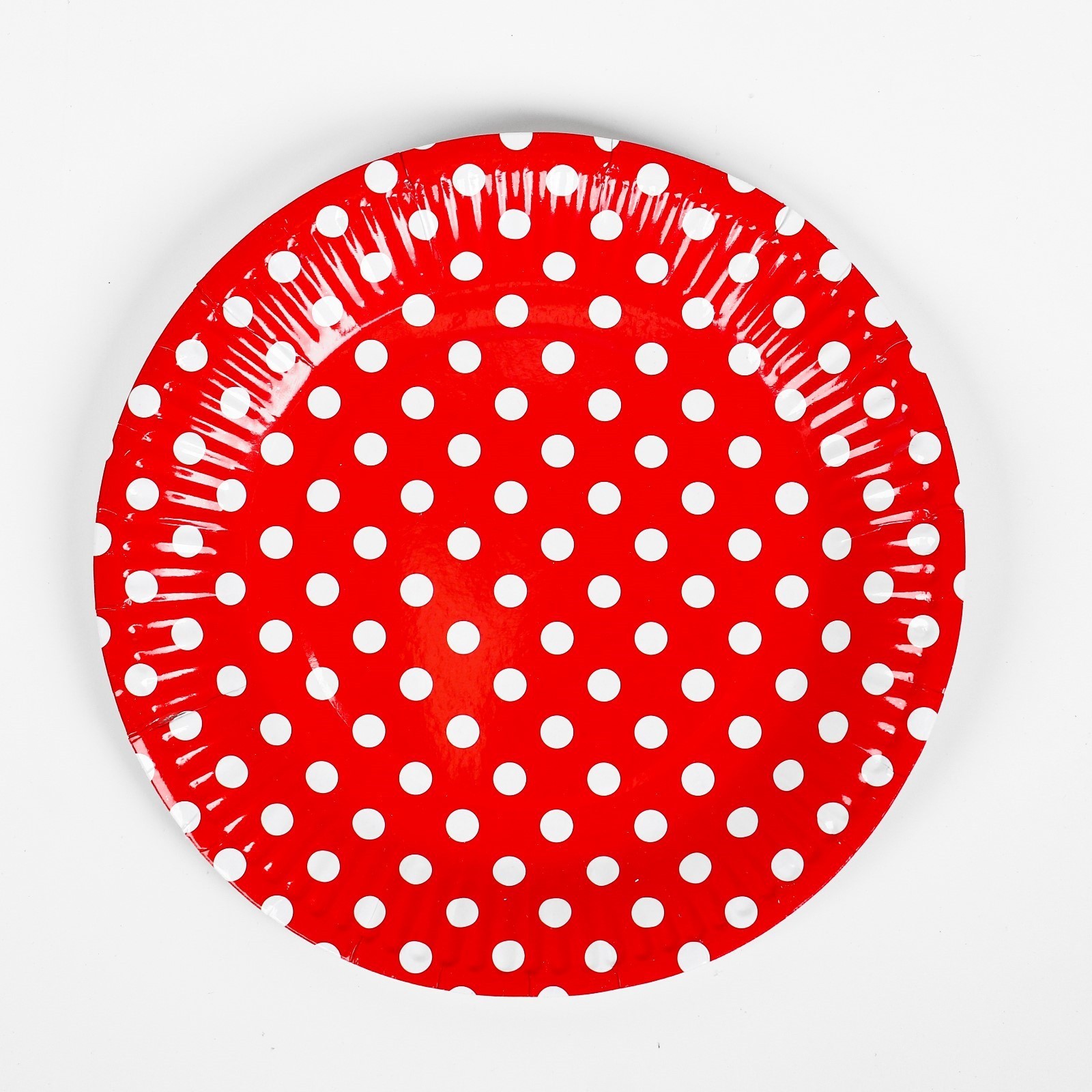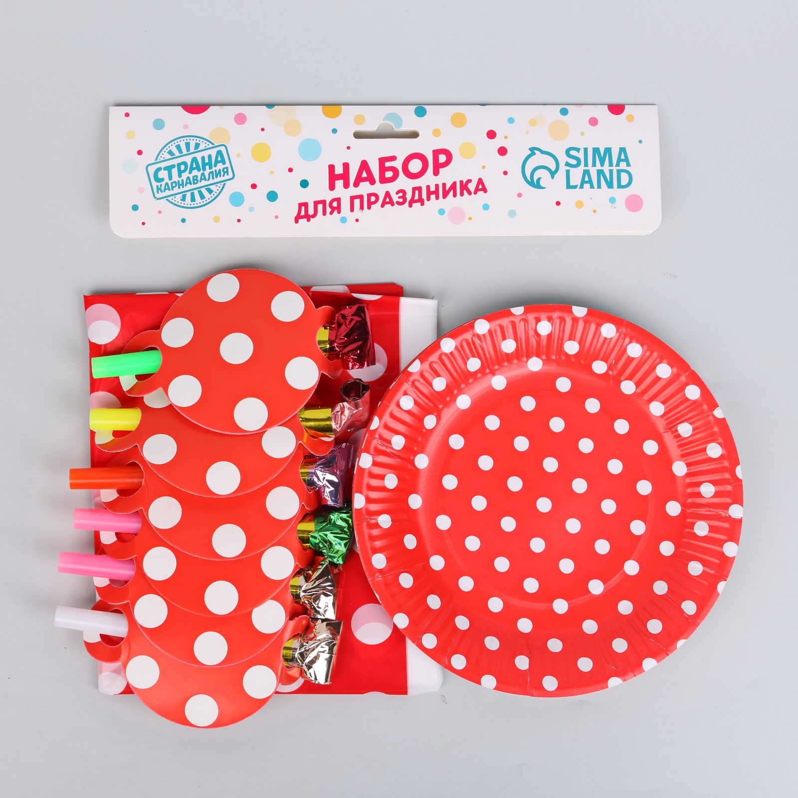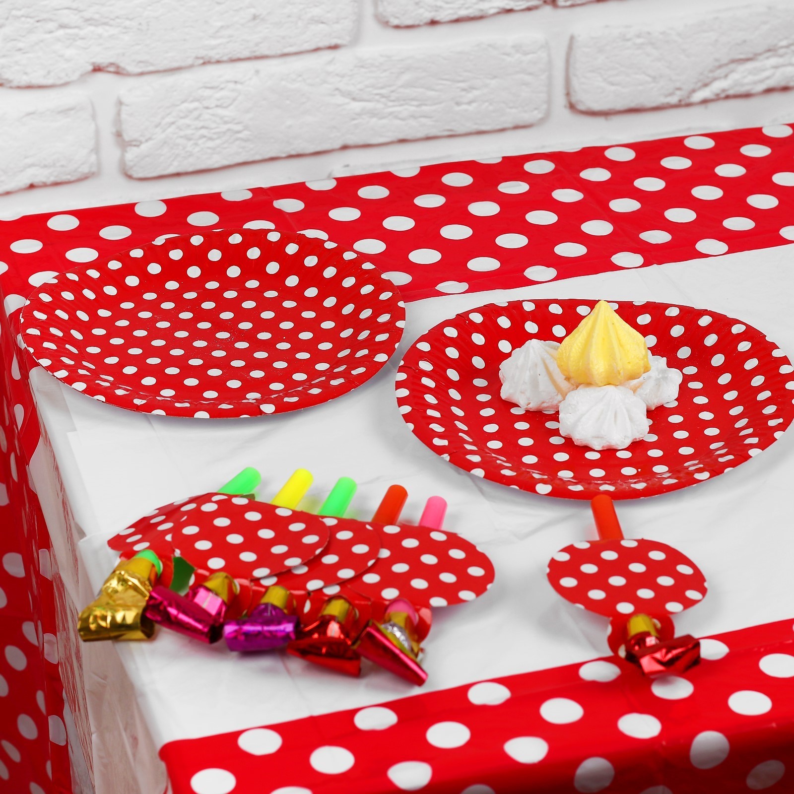 Набор для праздника «горох», скатерть 180х108 см, 6 тарелок, 6 язычков, цвет красный