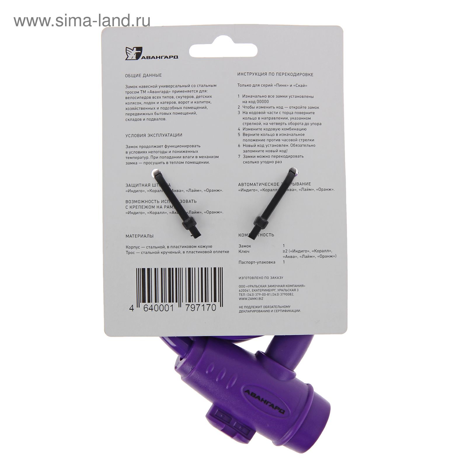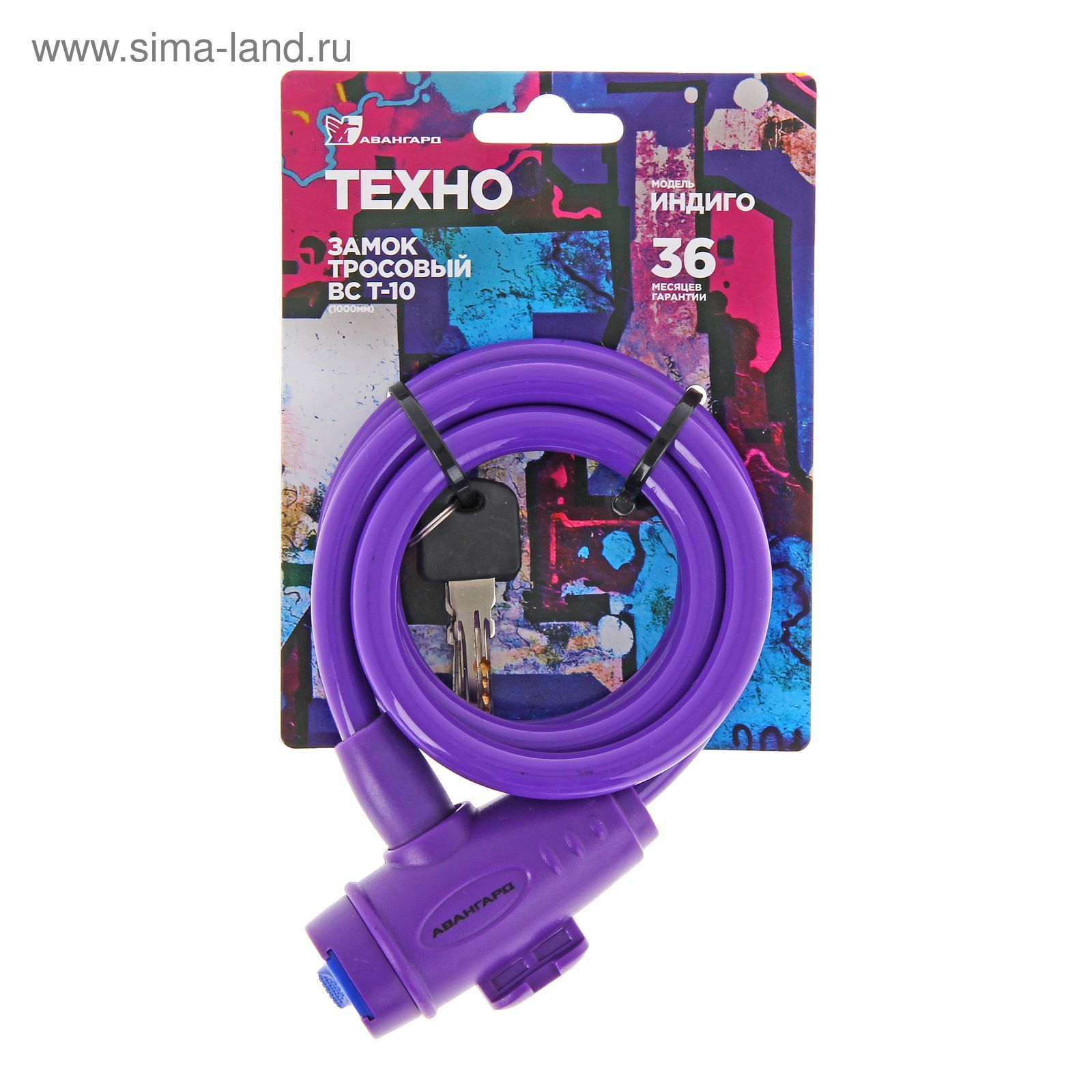 Замок навесной "авангард" вс-т10 техно индиго, с тросом, 1000 мм. Навесной замок с тросом не даст украсть ваши вещи в подъезде или на улице. Подходит для велосипедов, детских колясок, санок. Цвет: Фиолетовый Диаметр, мм: 10 Длина, мм: 1000 Количество ключей в комплекте: 2 Тип механизма замка: С ключом Вид замка: Тросовый Автоматическое запирание: Да  развернуть описание ▼