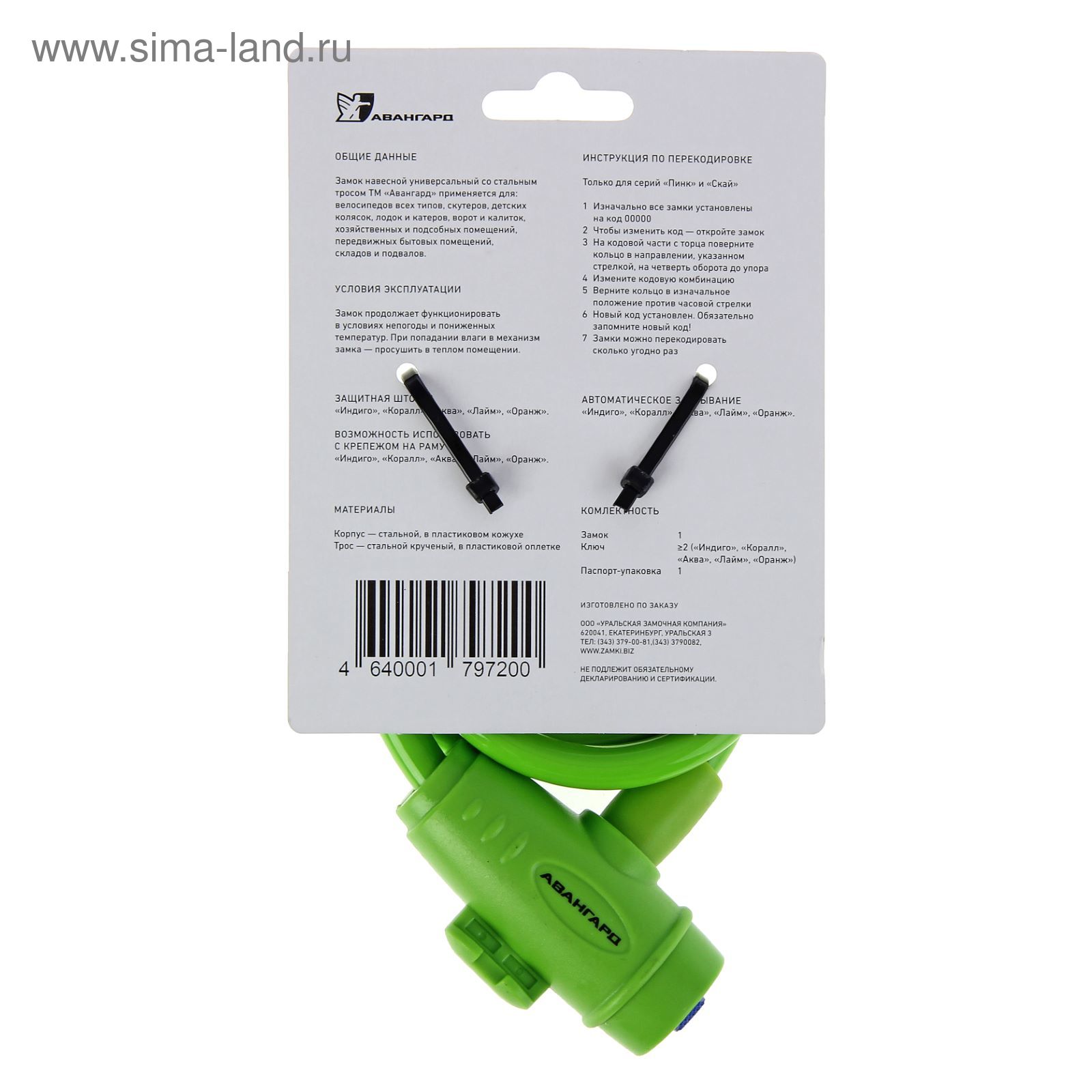 Замок навесной "авангард" вс-т10 техно лайм, с тросом, 1000 мм