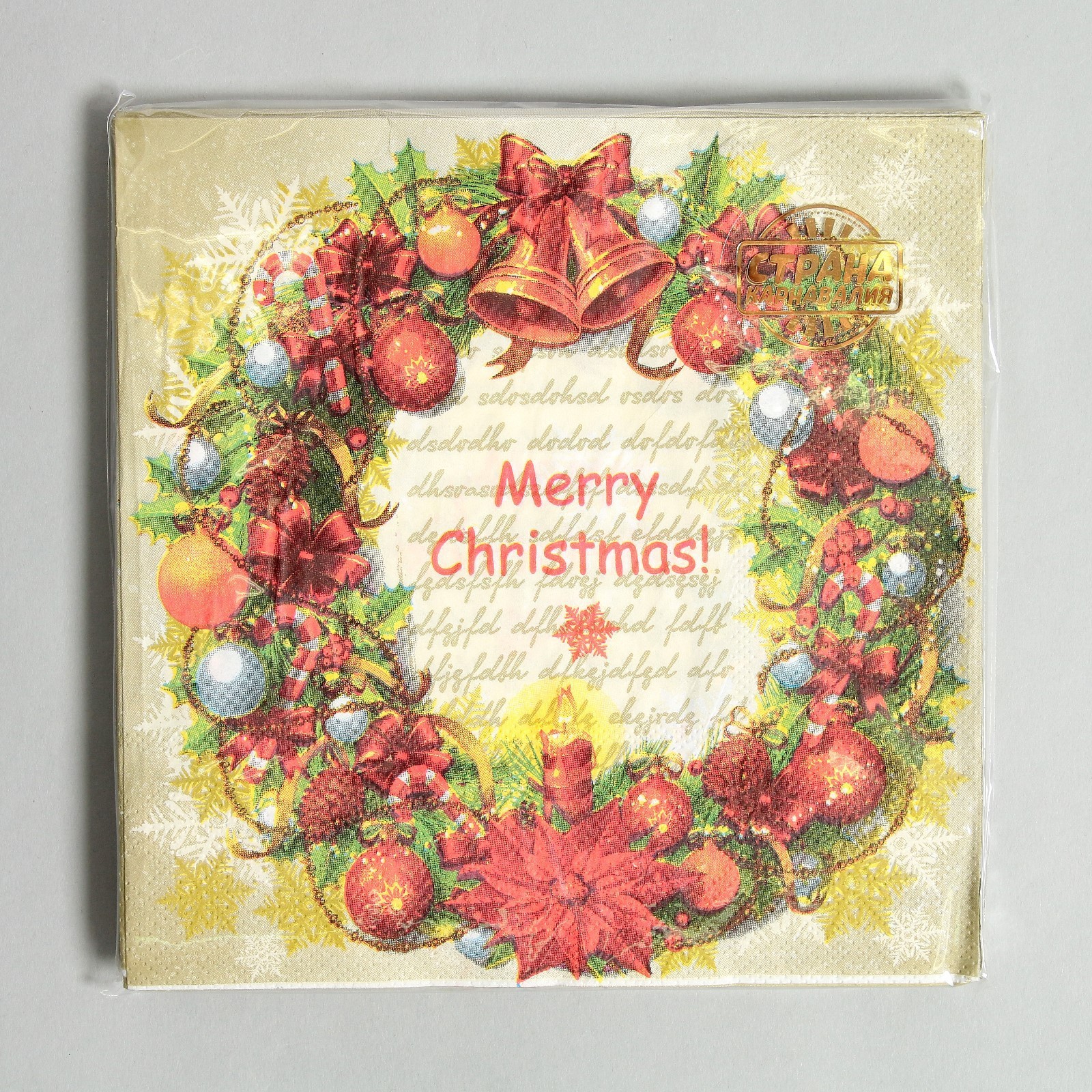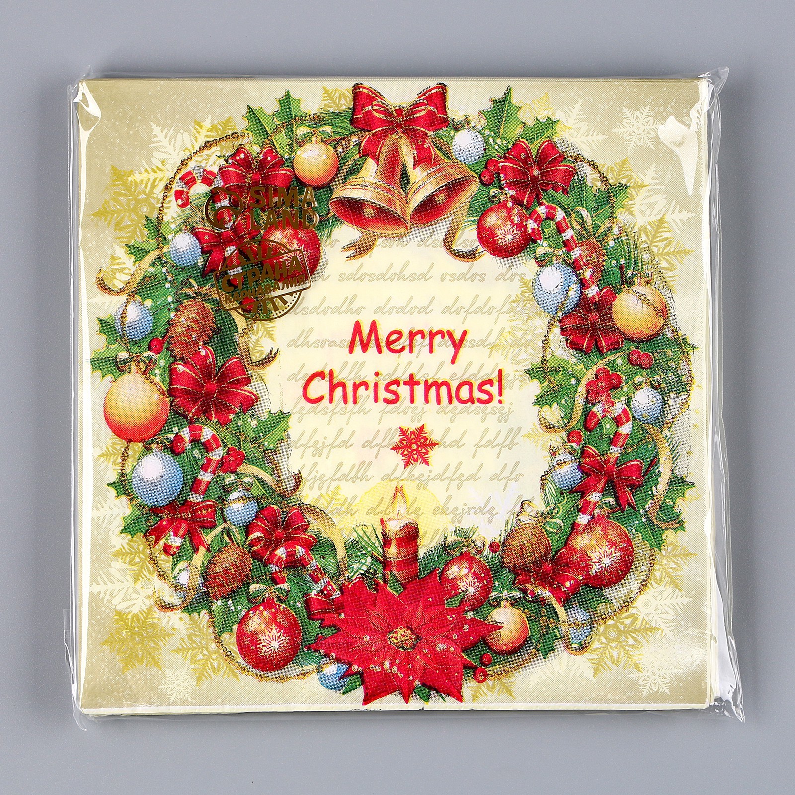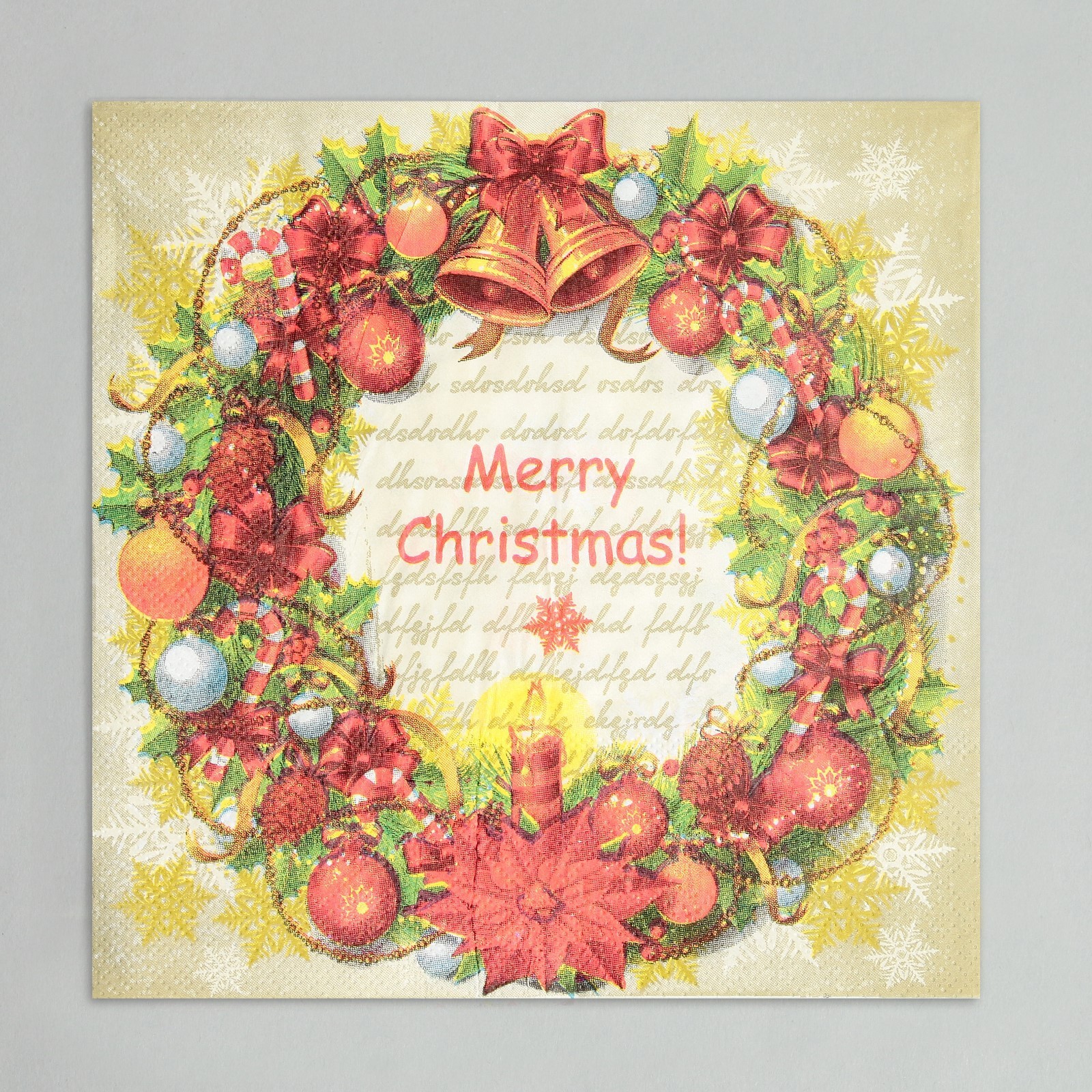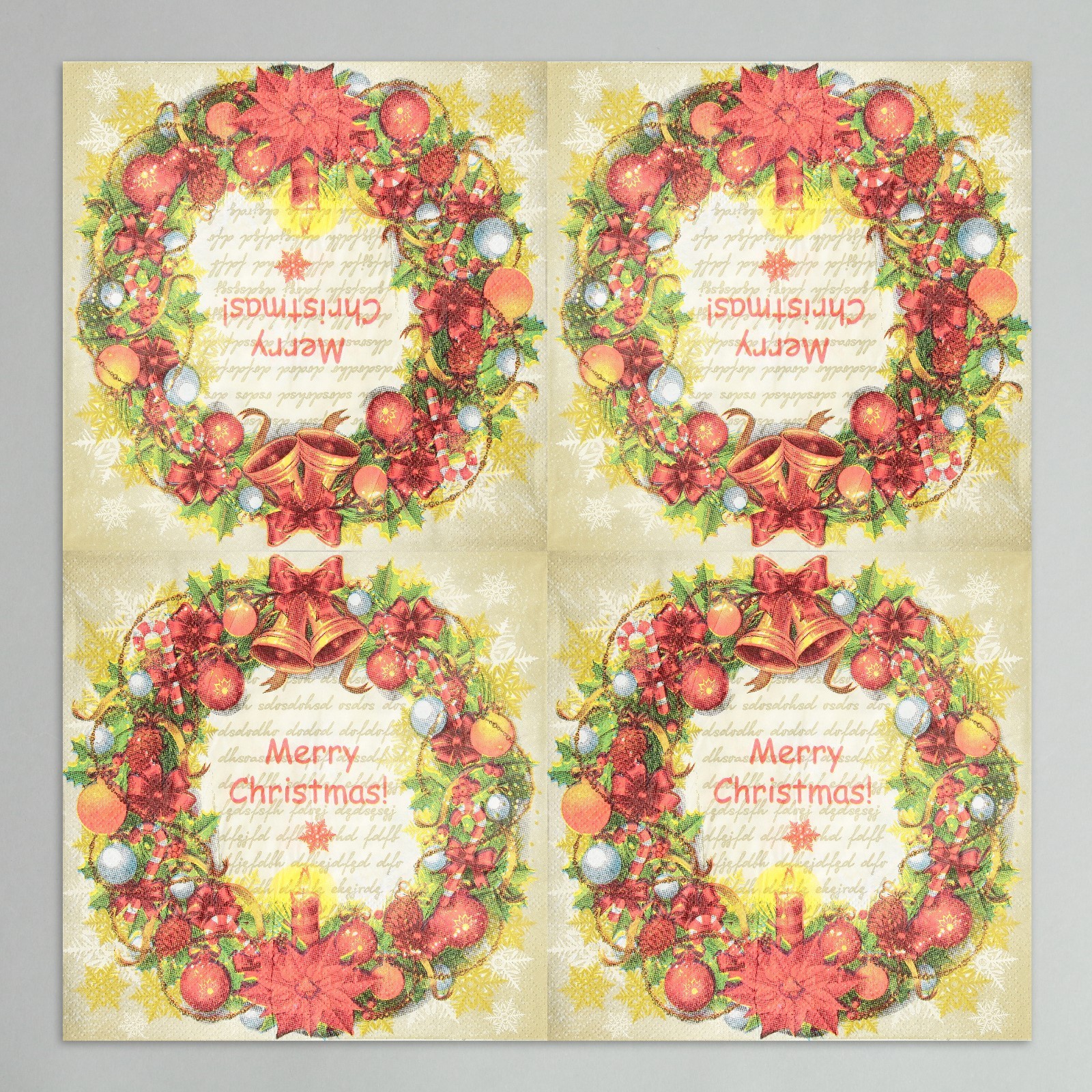 Салфетки бумажные «новогодний венок», 33х33 см, набор 20 шт.