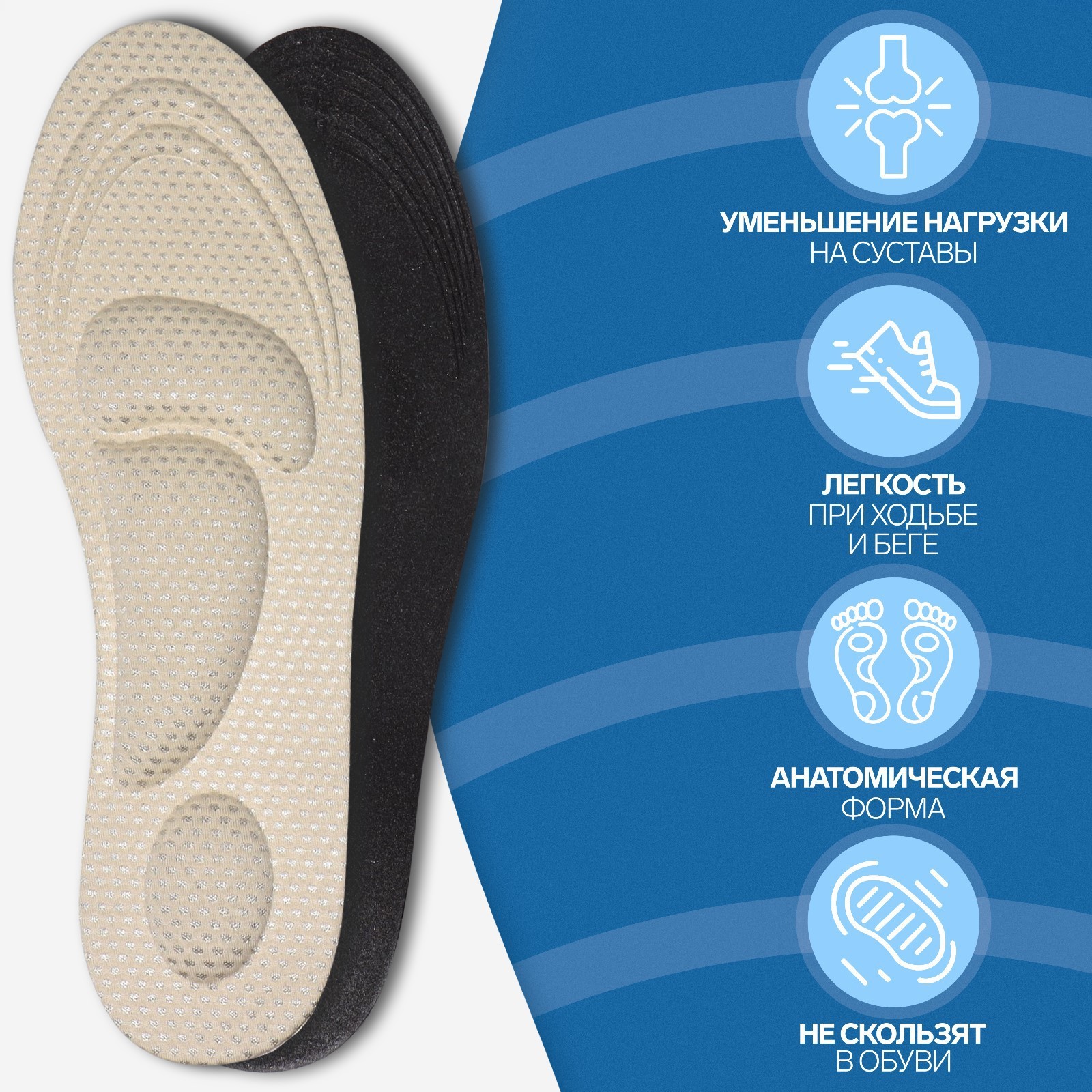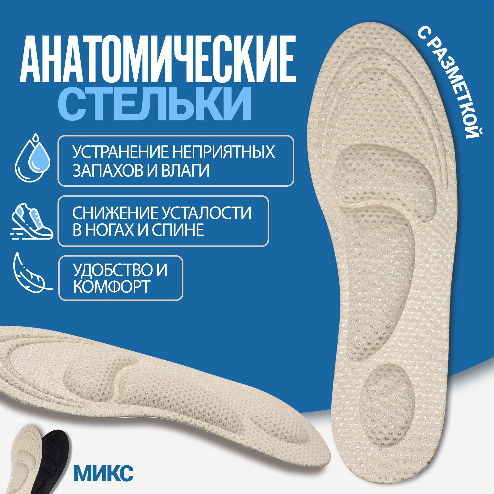 Стельки для обуви, универсальные, амортизирующие, р-р Ru до 47 (р-р пр-ля до 46), 29,5 см, пара, цвет микс