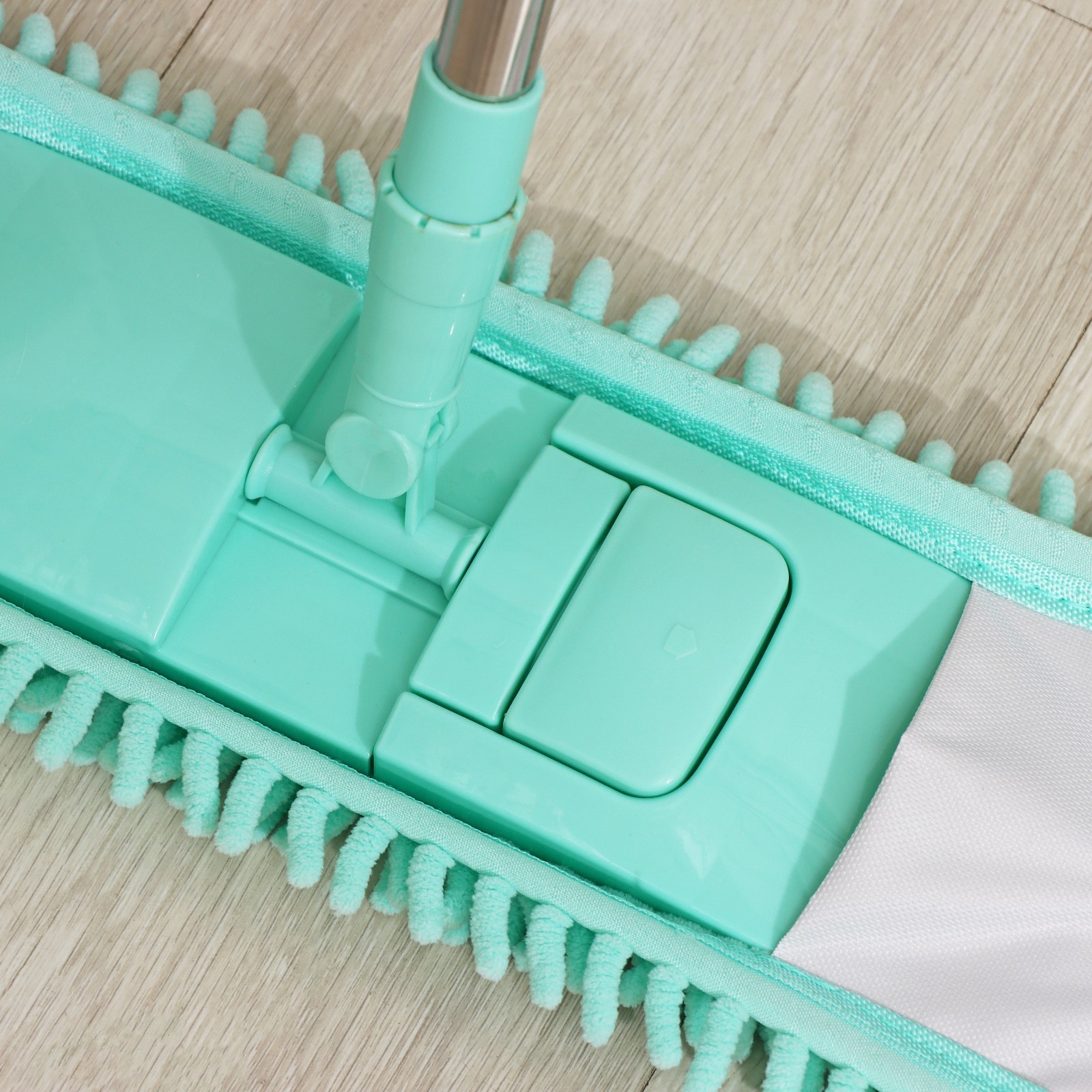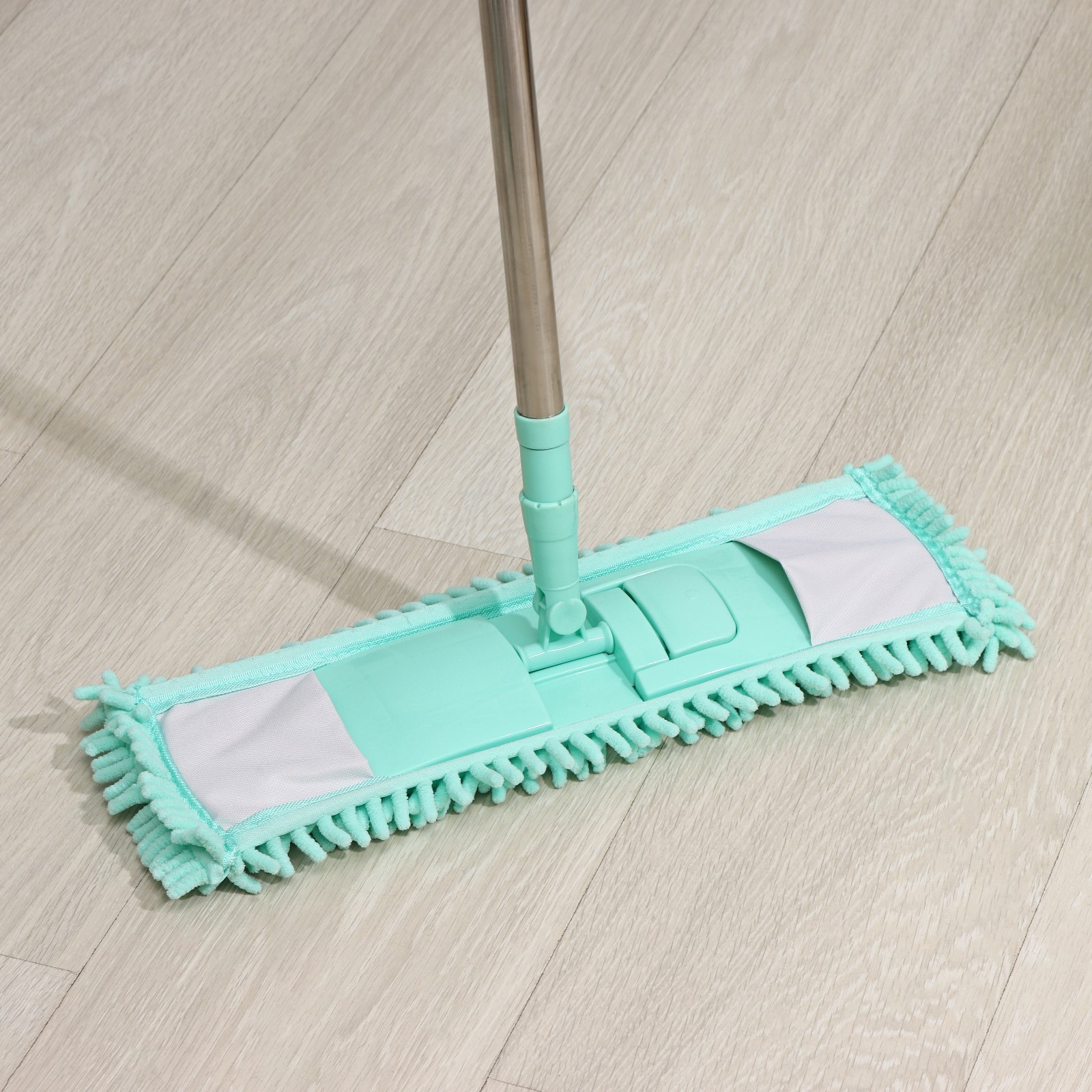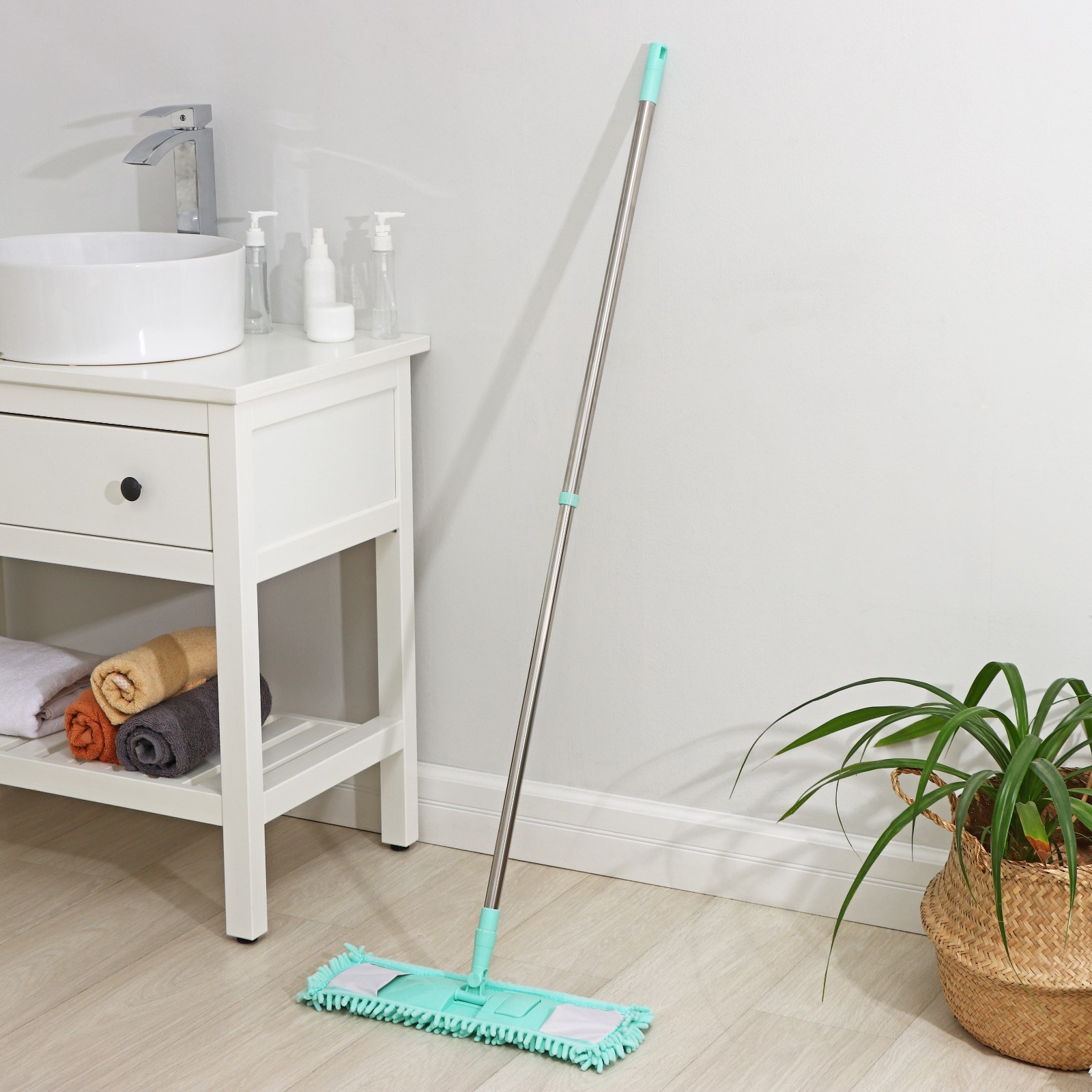 Швабра для мытья пола плоская доляна, насадка из микрофибры букля 42x12 см, телескопическая стальная ручка 80-117 см