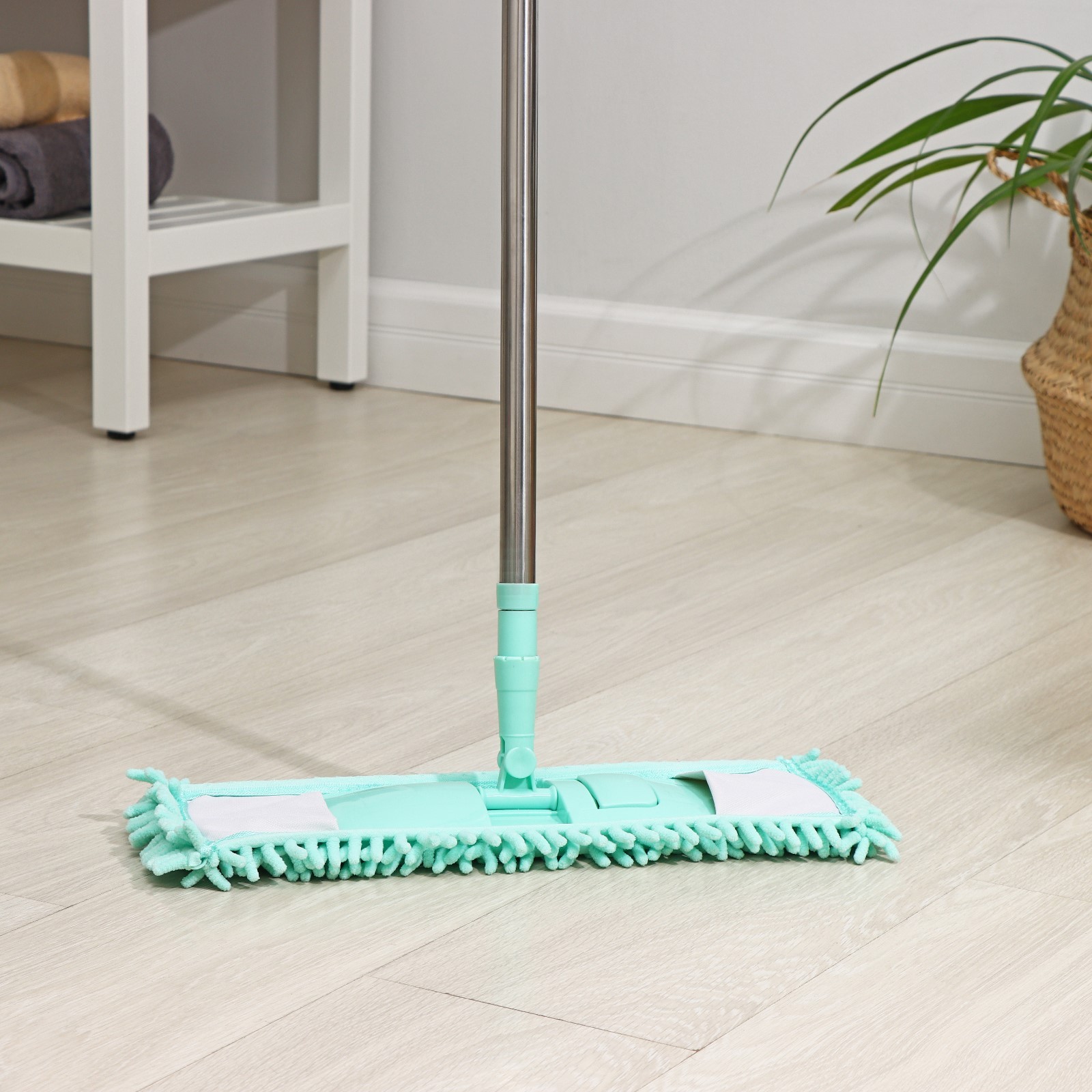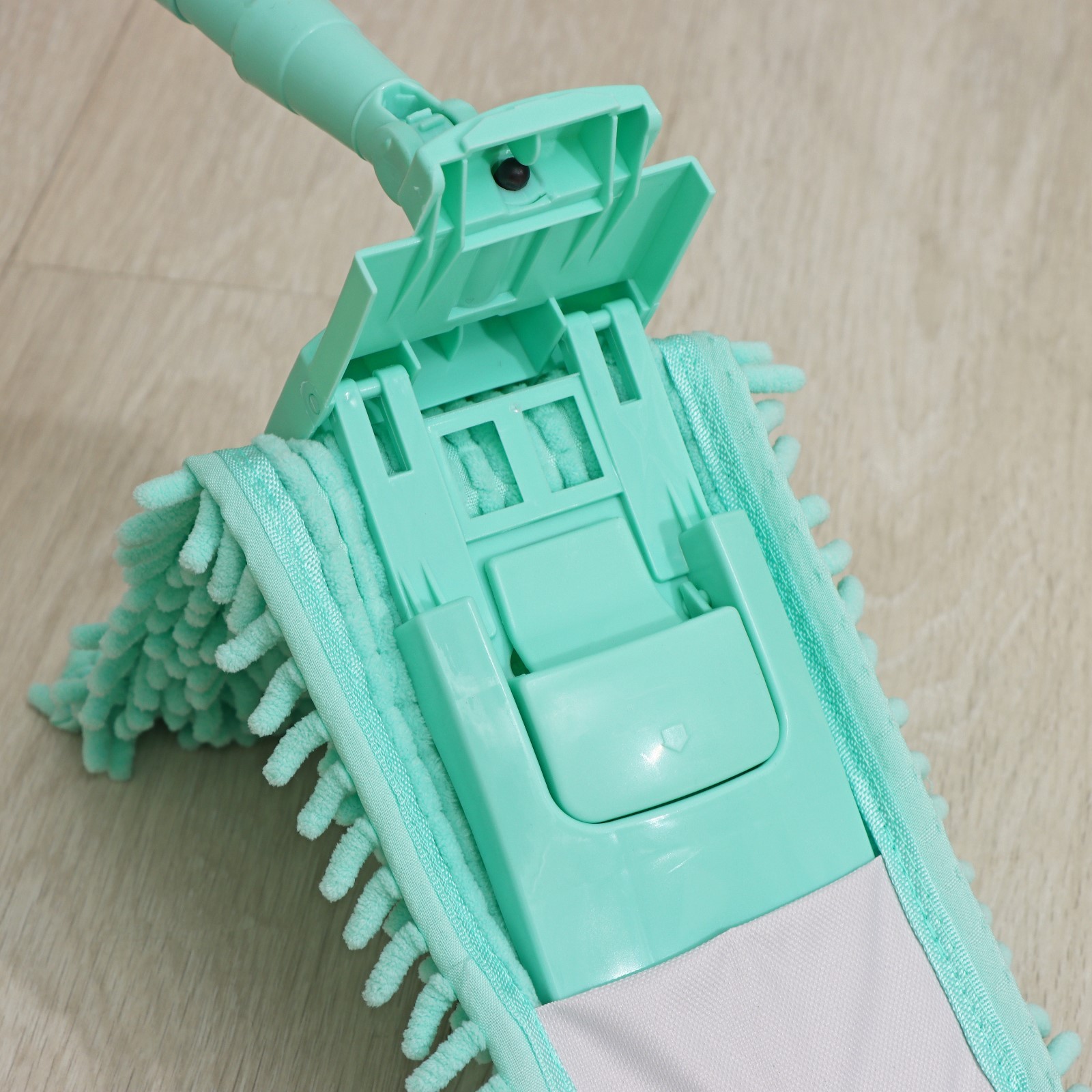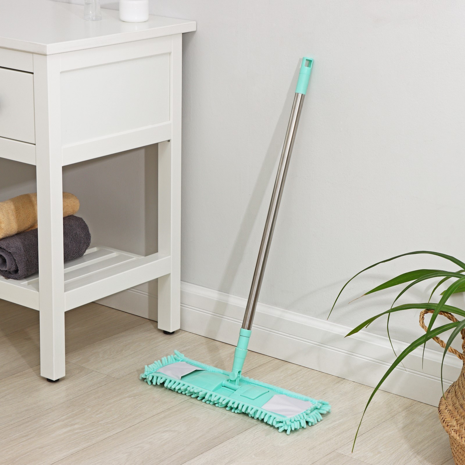 Швабра для мытья пола плоская доляна, насадка из микрофибры букля 42x12 см, телескопическая стальная ручка 80-117 см
