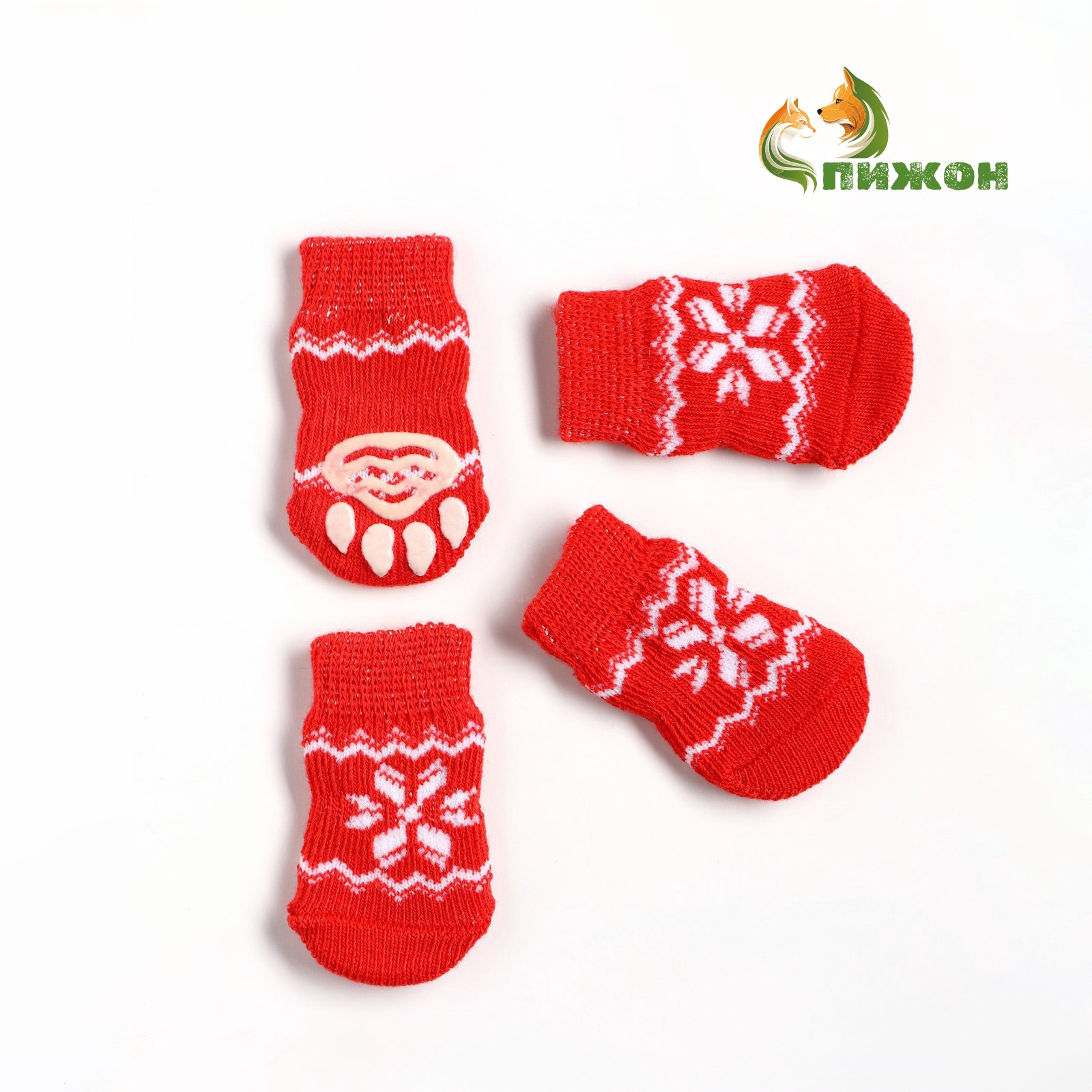 Носки нескользящие «снежинка», размер м (3/4 7 см), набор 4 шт., красные