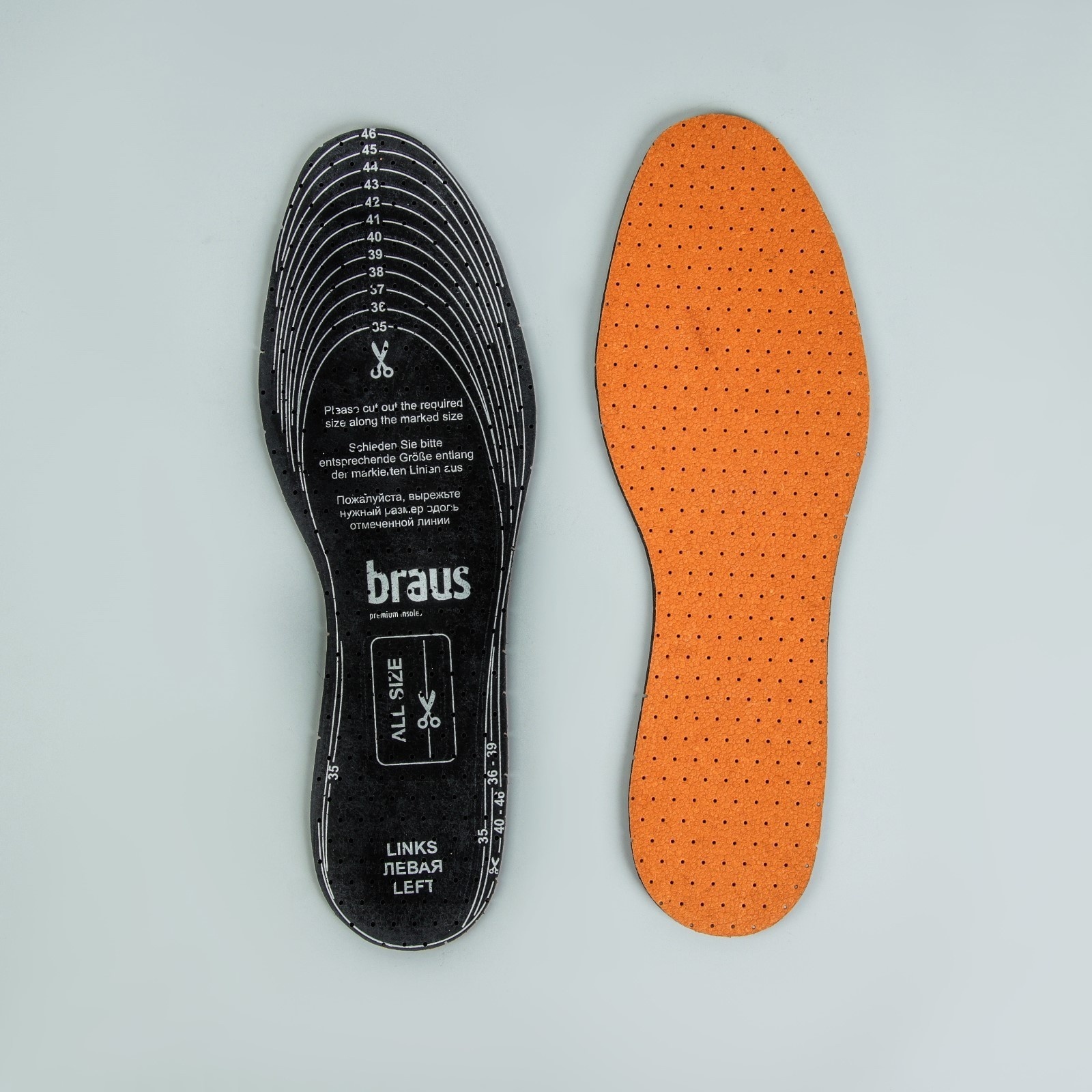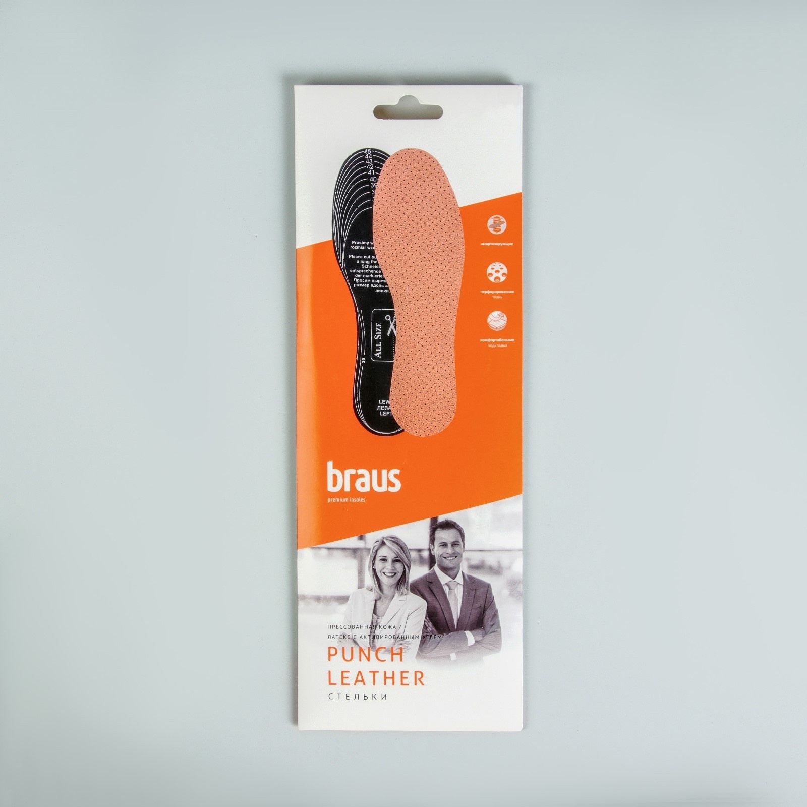 Стельки для обуви, кожаные, с латексом и активированным углём, антибактериальные, р-р Ru до 48 (р-р пр-ля до 46), 30 см, пара, ц
