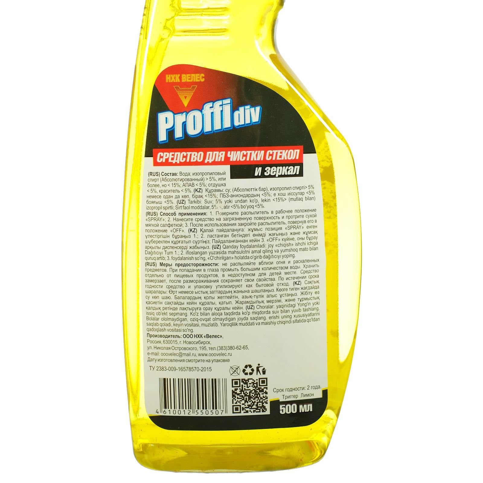 Средство для мытья стёкол и зеркал Proffidiv, лимон, 500 мл