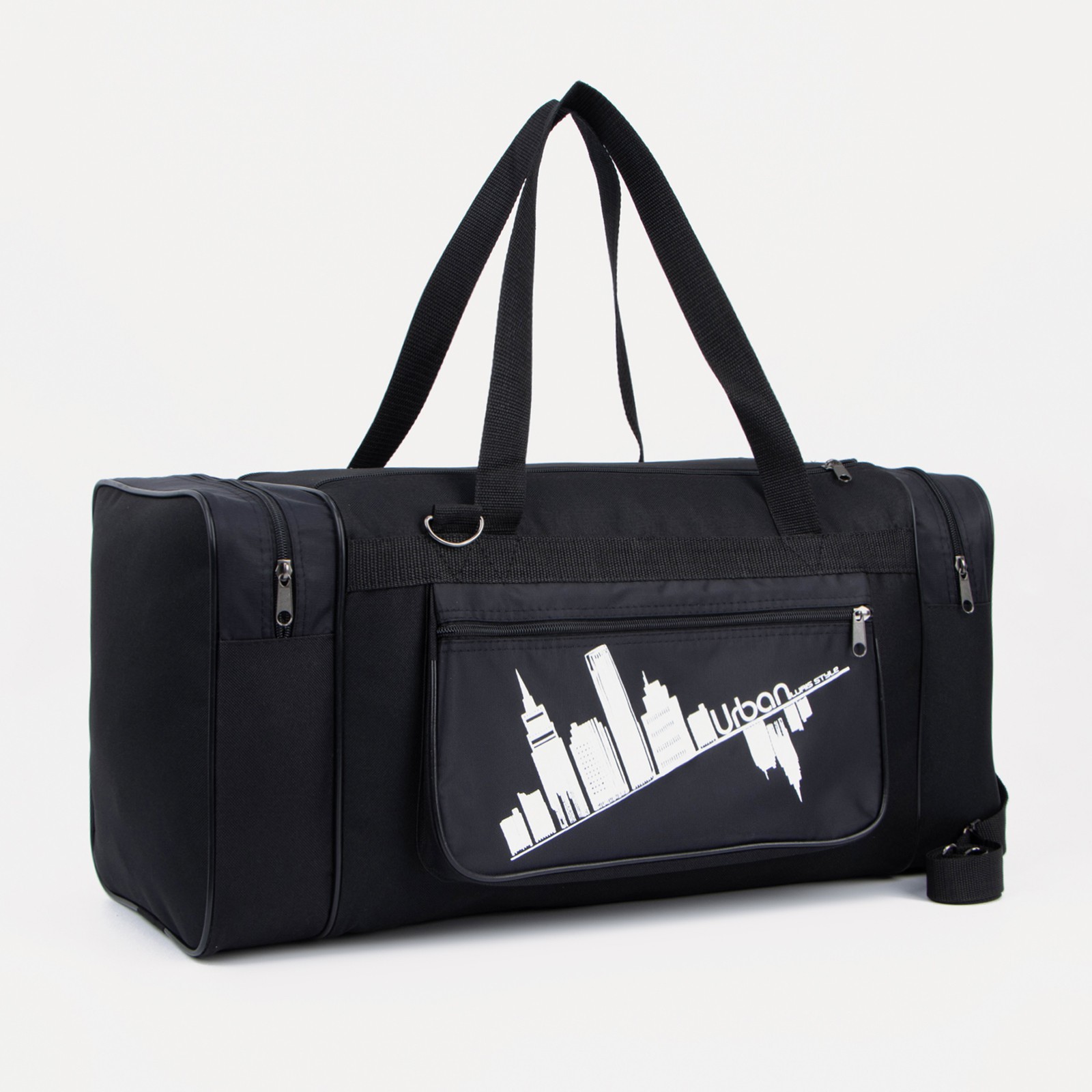 Сумка дорожная, 3 отдела на молниях, наружный карман, длинный ремень, цвет чёрный