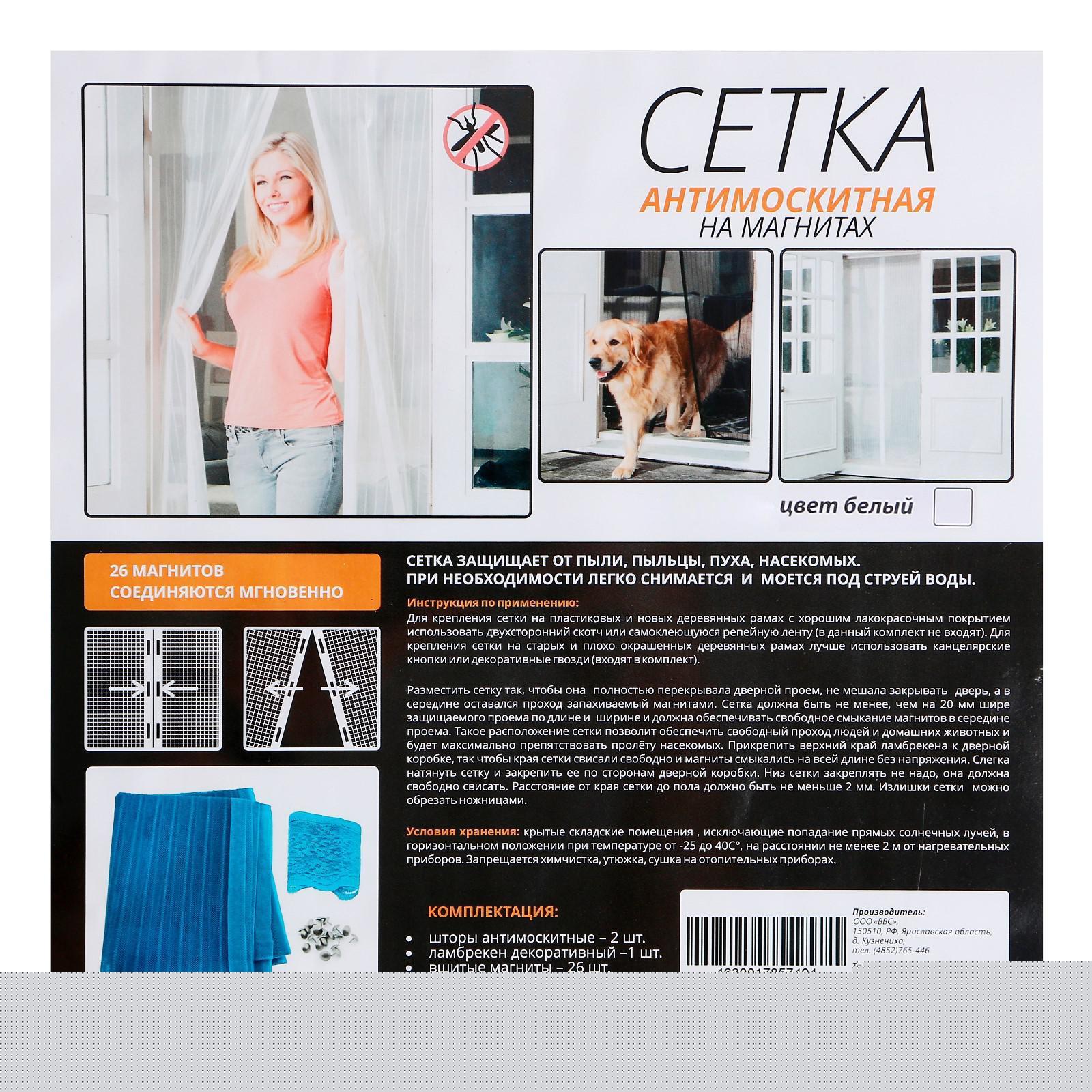 Сетка антимоскитная для дверей, 100 X 210 см, на магнитах, цвет белый